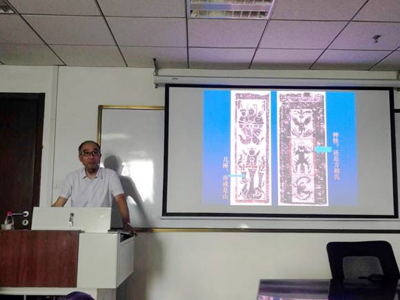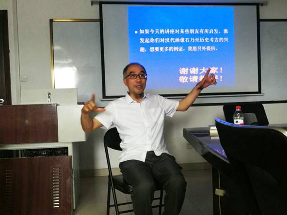 最后,杨老师简要介绍了他对汉代画像石研究前瞻的思考,他认为要用建筑的眼光认识和对待汉代画像石的实物标本,即从其本身作为建筑物存在入手,考虑空间与整体概念;要历史地看待汉代画像石,汉代画像石是“为死者组成的形象天地”,但这“组成死者的形象天地”也是生人所为所知的;要对汉代画像石坚持多学科的综合研究。