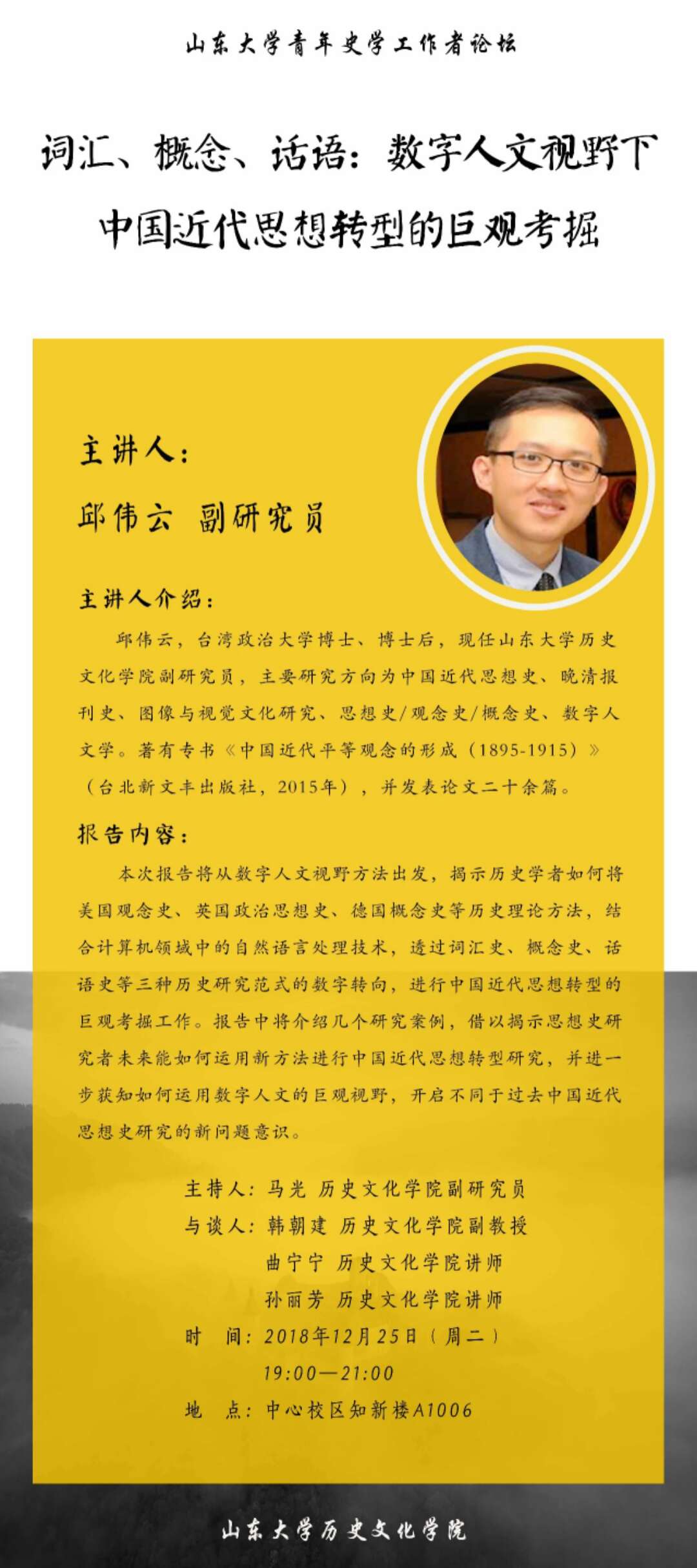 上一条:【学术资讯】公司承办第784期“稷下风”研究生学术讲坛:从文化自信到文化自觉 下一条:【学术资讯】“考古学者应是思想家,更应是诗人”——焦天龙教授“考古学概念与实践”专题系列报告