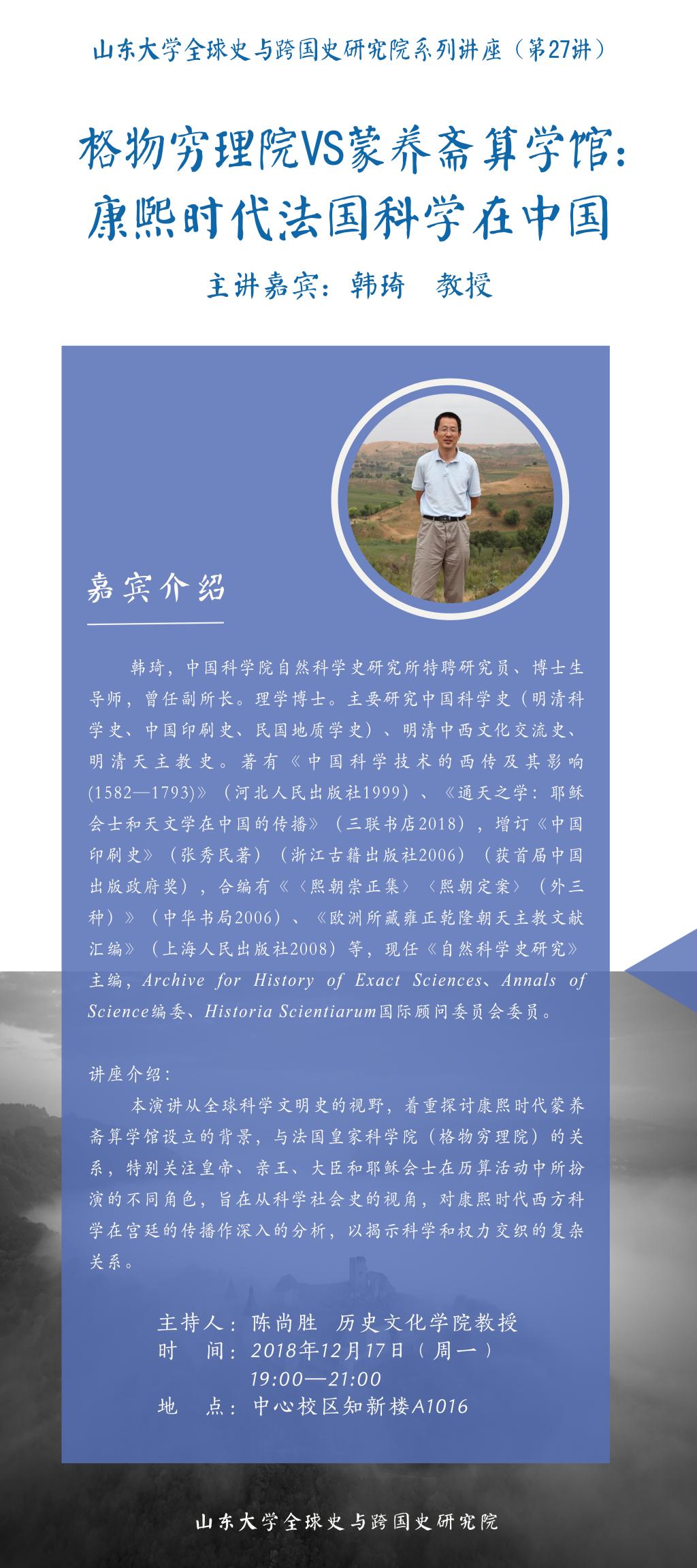 【长风讲坛】全球史与跨国史研究院系列讲座第27讲——格物穷理院VS蒙养斋算学馆:康熙时代法国科学在中国