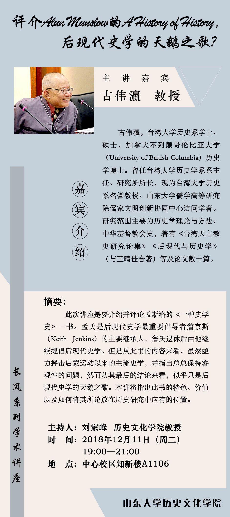 【长风讲坛】长风系列学术讲座——评介Alun Munslow的A History of History,后现代史学的天鹅之歌?