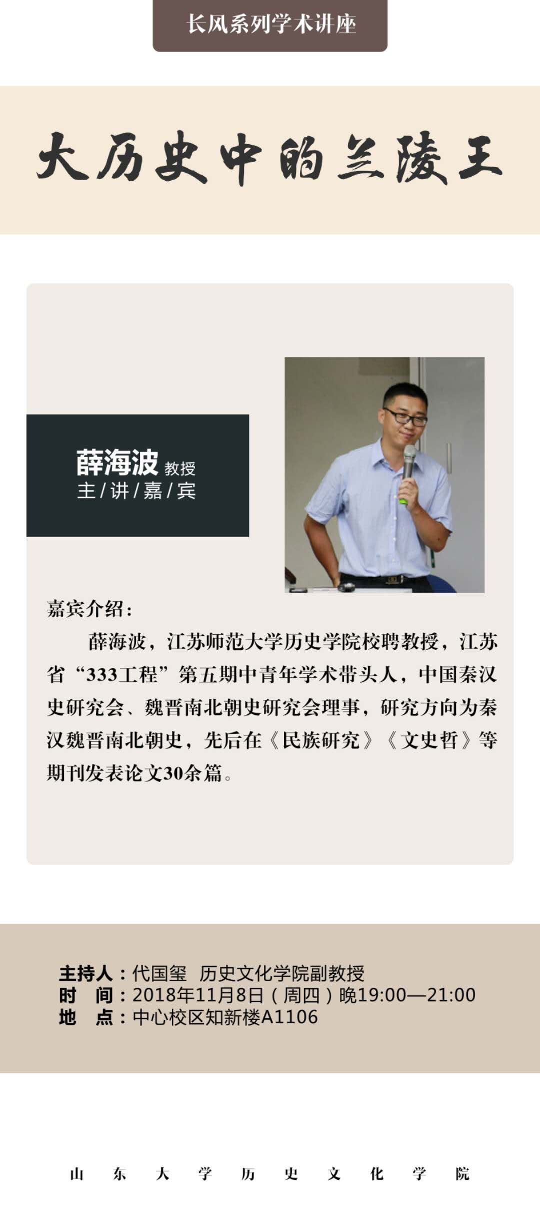 【长风讲坛】长风系列学术讲座——大历史中的兰陵王