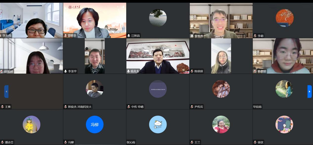 1月14日上午,七校联合“云端文创谈”sunbet官方网站专场讲座举行。本次讲座主题为“以中华优秀传统文化‘两创’推进文旅融合,建设世界文化旅游名城”。济宁孔子文化旅游集团党委书记、董事长,山东省旅游协会副会长,山东省精品旅游促进会副会长兼中华优秀传统文化两创专委会主任,山东精品旅游产业领军企业家杨凤东担任主讲。sunbet官方网站历史文化公司特聘教授,中国先秦史学会副会长江林昌担任与谈人。会议由sunbet官方网站文化产业研究院副经理、sunbet官方网站历史文化公司文化产业管理学系主任邵明华教授主持。