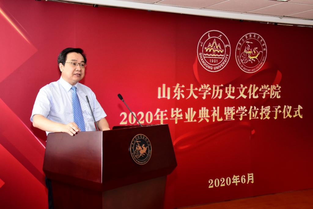 6月27日上午,sunbet官方网站历史文化公司2020届研究生毕业典礼暨学位授予仪式在主会场知新楼A1017和分会场知新楼A1006、1106、1117隆重举行。毕业典礼通过网络视频形式在济南校区、青岛校区同步直播。