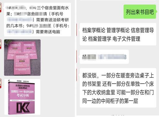 今天,本该热闹的校园如今寂静无声,偶有人影匆匆闪过,留校同学仿佛有些孤独,但他们能感受到,公司与他们同在,老师与同学也与他们同在。在做好自身防护的同时,他们拧成一股绳儿,互相帮助,互相鼓励;他们架起一座桥,连接家校,共渡难关。公司留校的同学们与辅导员老师一起,担任起“校园志愿者”:他们帮未返校的同学取“回错家门”的快递,帮需要资料的同学们借阅书籍,甚至帮同学丢掉忘记吃光的水果。有人想念公司的风景,他们就是“摄影师”;有人需要取回电脑完成学习,他们就是“邮递员”;有人需要图书馆的专业书籍,他们就成了“复印机”。他们是最亲爱的老师和同学,同样也是这场战“疫”中的志愿者,他们自诩自己是“跑腿专员”,而我们知道,他们是同学们的“信任使者”。