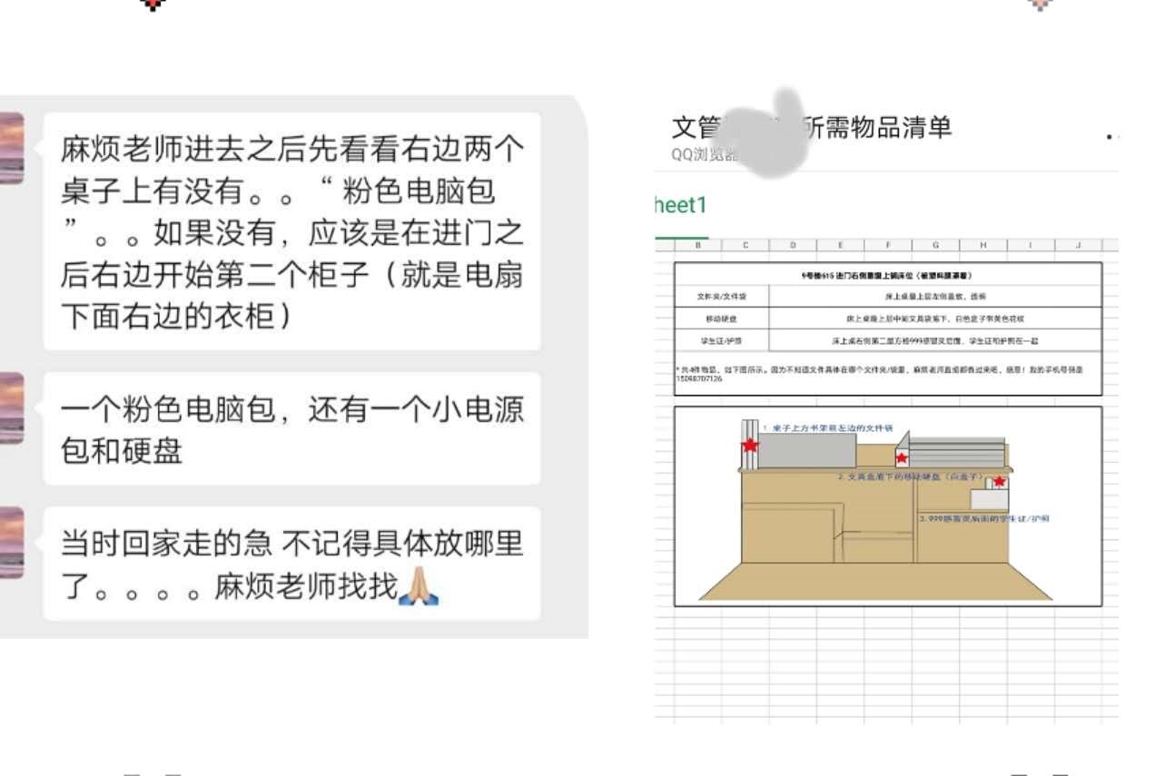 “老师,电脑在宿舍柜子里,柜子有锁……”,上门取件的小困难也没有难倒我们的“快递员”,和员工确认后,辅导员带着小型工具进入宿舍,成功“解锁”,顺利取出电脑并及时寄送。员工存放在宿舍的水果没找到怎么办?桌子上、床底下、柜子里,全面搜寻,终于找到了已经腐坏的黑色芒果,及时解决了员工“心头患”。偶遇“接单量”大,6个宿舍、6把钥匙、6层楼,电动车、小推车轮番出动,连同同学们需要的成绩单、户口复印件等影印材料,辅导员们逐一落实、精准“配送”。