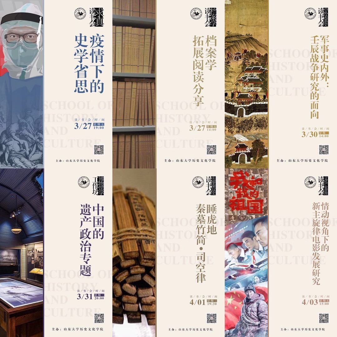3月27日至4月3日,历史文化公司“思享 ”系列线上读书会顺利举行。6场读书会分别以:“档案学拓展阅读分享”、“疫情下的史学省思”、“壬辰战争研究的面向”、“中国的遗产政治专题”、“睡虎地秦墓竹简·司空律”,以及“情动视角下的新主旋律电影发展研究”为主题,通过线上平台进行交流分享,师生共同参与,拓展学术视野。