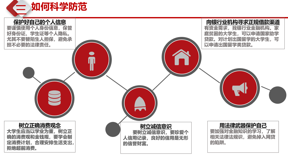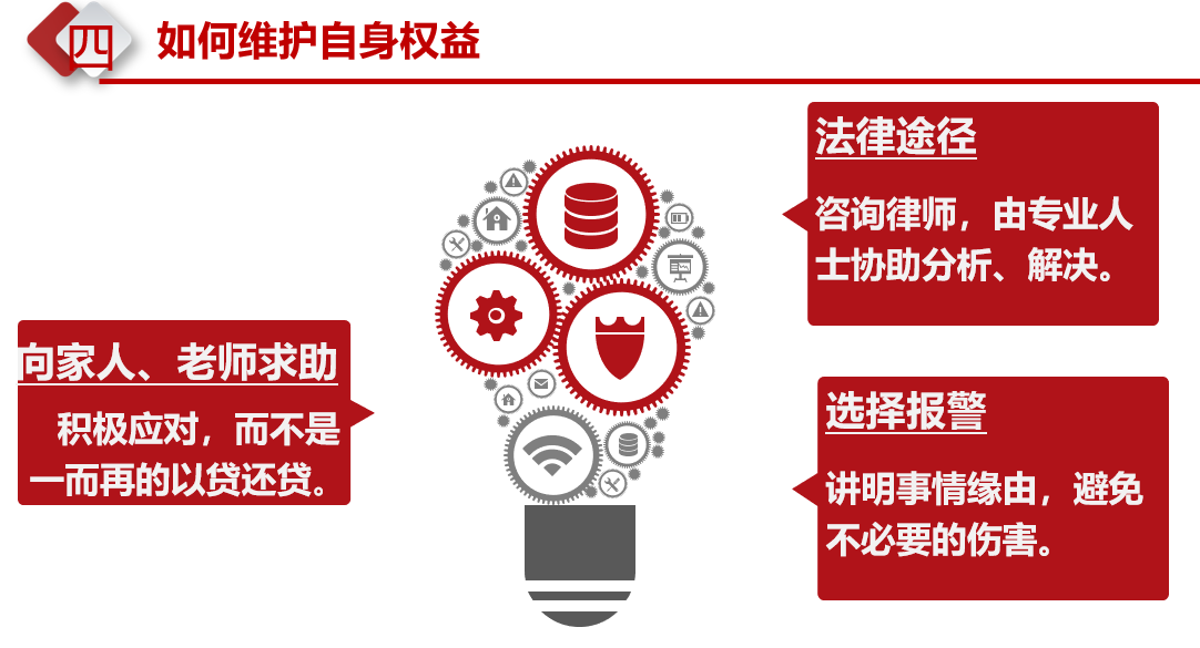 本次讲座分为金融诈骗、校园贷、维护自身权益三个部分。孟老师首先分析了金融诈骗的现状,又通过讲述电信诈骗、网上购物诈骗、票务售卖诈骗等等与老员工息息相关的真实案例,为同学们总结金融诈骗的“套路”,并有针对性地给出了具体的防范措施。对于“校园贷”,孟老师列举了市场上现有的校园贷种类,并将非法校园贷与正规银行贷款、电商平台贷款等进行区分,在指出非法校园贷风险与危害的同时,又通过列举裸贷案例、利息计算等方式,揭露非法校园贷“无底洞”性质,并由此引出科学防范的方法。此外,孟老师还系统地介绍了国家助学贷款的正规渠道,从贷款形式、贷款要求到还款方式都进行了详细的解读,为需要各类助学金资助的本科生提供了一条正规安全的借贷道路。最后,孟雨为不慎“踩雷”的同学们提供了维护自身权益的多种方法,包括需要搜集和保存的证据内容、具体的法律条文和报警途径等等,引导大家树立依法维权的意识。