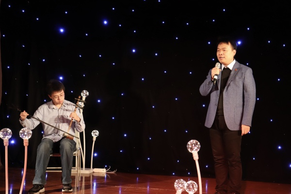 在第三轮比赛中,六位选手倾情演唱,尽显自身过硬实力。在场观众也为选手们加油助威,将现场气氛热烈。比赛接近尾声时,张伟老师上台与大家亲切交流,他谈到歌唱比赛作为美育的重要组成部分,能够纯洁思想、陶冶情操、温润心灵,培育创新、增强自信,对于丰富学子的精神世界,营造富有生机与活力的校园文化氛围具有重要作用。随后,张老师与2017级本科档案学专业郭辛凯同学为大家带来惊喜演出京剧选段《梨花颂》,将现场气氛推向高潮。