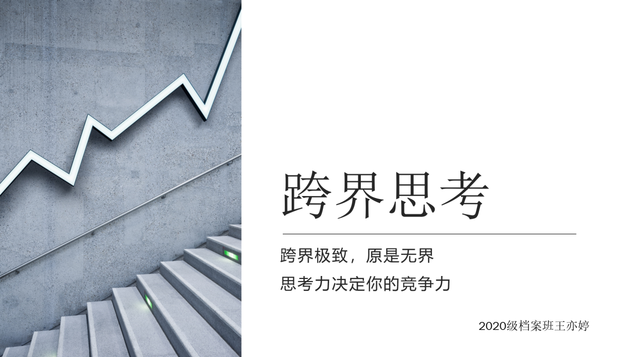 王亦婷同学从核心概念、关键之处、重中之重、在问题中的应用等方面内容向大家介绍了《跨界思考》,并向我们展示了她在阅读本书时的感悟和心路历程。