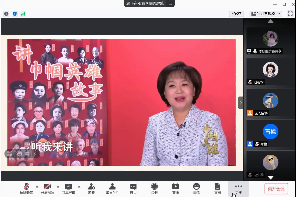 巾帼英雄事,闪耀在党史。中国史世界史党小组李妍以党史上的巾帼英雄为主题,结合视频,为大家讲述了几位可歌可泣、令人敬仰的女性共产党员的光辉事迹。这其中有中国共产党早期领导人及创始人之一的向警予,她曾经发起妇女解放运动,积极宣传共产主义思想,即便是被俘遭受严刑拷打也坚决不会背叛组织;这其中有乌斯浑河上八女投江的壮举,宁愿以身殉国也绝不落入敌寇之手;这其中也有全国特等女战斗英雄郭俊卿;更有新时代全国脱贫攻坚楷模张桂梅,扎根云南贫困山区40多年,推动创建了中国第一所免费女子高中,2008年建校以来已帮助1600多位女孩圆梦大学。