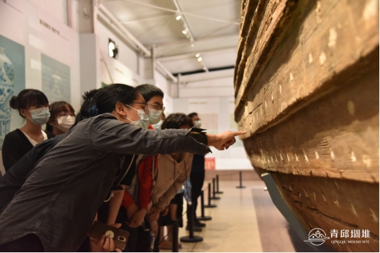 在菏泽市历史与考古研究所所长孙明的带领下,队员们参观了元代沉船展厅。孙明结合自身发掘经验,为队员们介绍元代沉船的发掘过程和成果。2010年9月,菏泽元代沉船在建设工地中被发现,随后省文物局迅速组织开展发掘工作。沉船为木质内河船,由于保存环境的不同,左侧木质基本腐朽,右侧及底部保存相对完整。沉船残长21米,除船头和船尾的独立舱外,共分为10个船舱。沉船及周围出土陶器、瓷器、漆器、玉石、玛瑙、石器、铁器、铜器、玉饰等不同质地的文物110余件。在菏泽市发现的元代沉船保存基本完整,为研究元代木船形制及制作工艺提供标本;同时对菏泽地区漕运史、河运交通及蒙元时期黄泛区的地形地貌等研究均有重要意义。