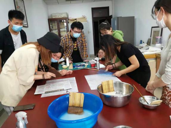 2021年5月12日,历史文化公司2018级档案班在霍艳芳老师带领下,前往sunbet官方网站图书馆古籍修复室参观学习。古籍修复室张同彬老师和李璇老师耐心地为同学们讲解相关知识并演示操作流程。