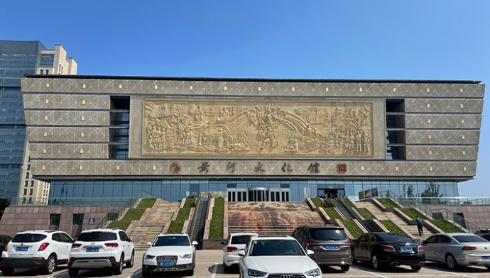 调研初始,团队成员前往了黄河文化馆、东营盐文化博物馆、东营城市规划馆与雪莲大剧院。黄河文化馆是东营市第一家“国字号”场馆,文化馆共四层,建筑面积2万余平方米,包含了8个主题展厅。场馆展陈紧扣黄河文化这一主题,采用现代化的声光调控技术,再现黄河流域的历史人文特色。在对其余场馆的调研中,团队也进一步了解到东营市历史悠久的盐文化与城市规划建设的变迁,加深了对黄河文化的理解。