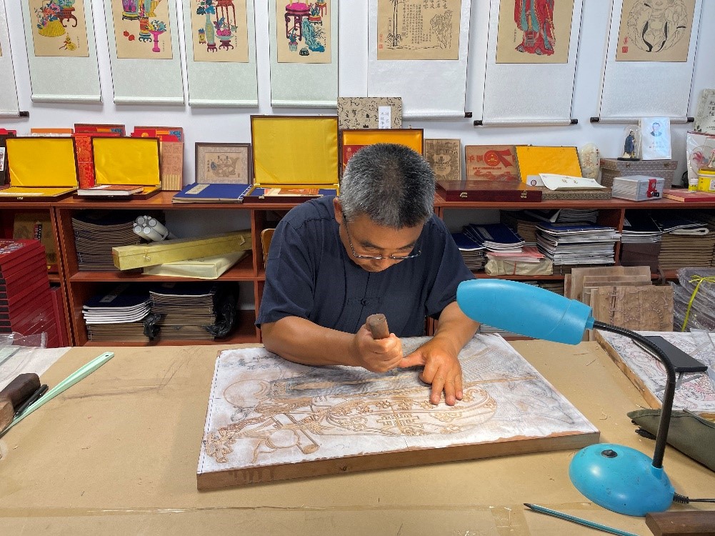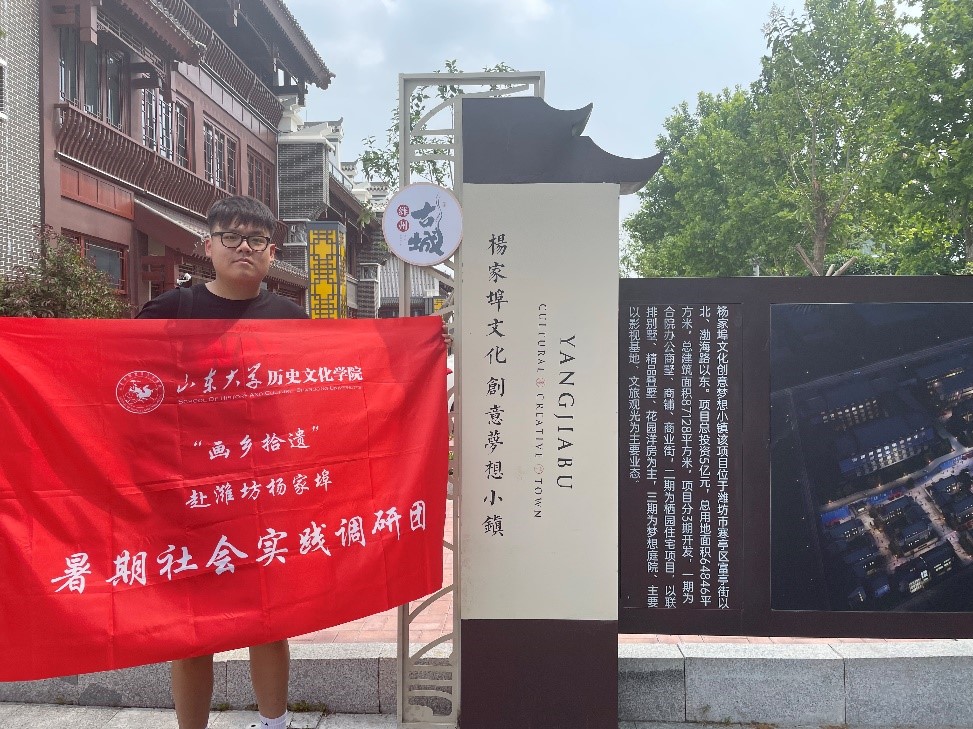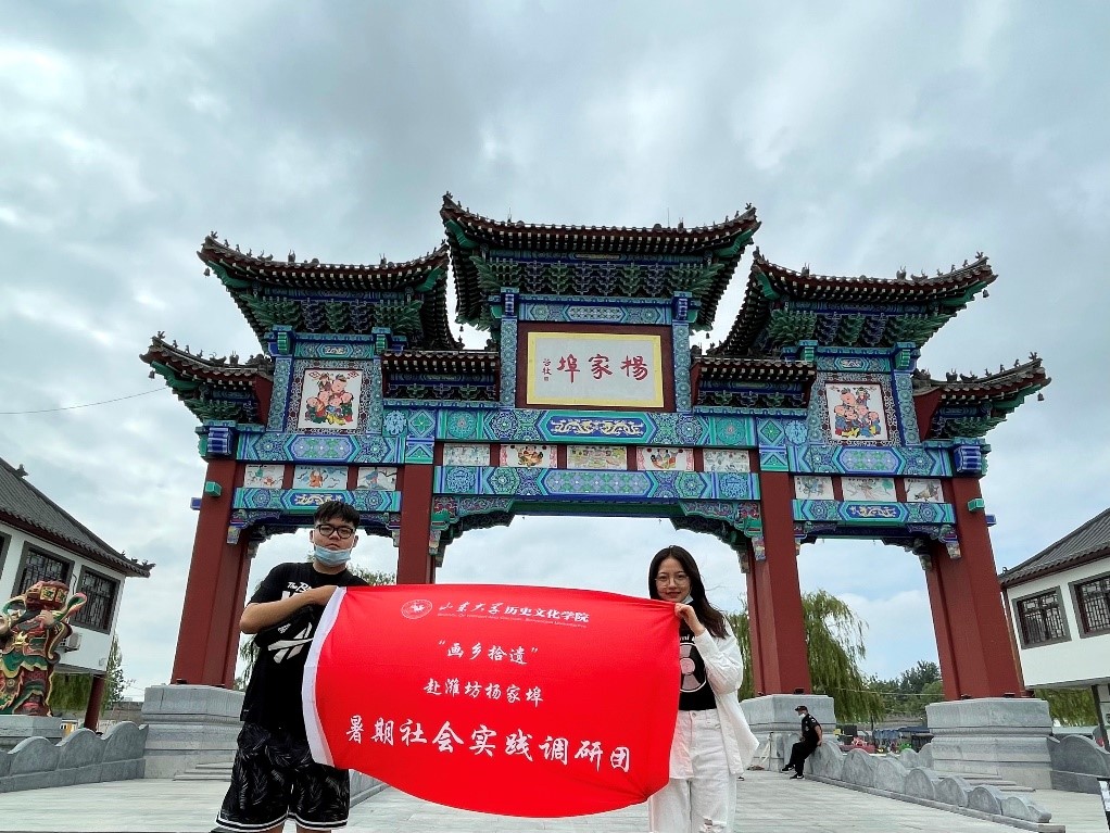 8月22日,队员前往潍坊市“山东省历史文化名村”杨家埠进行实地探访,当地的风筝和木版年画为国家级非物质文化遗产。团队成员先后参观了杨家埠民间艺术大观园、年画风筝一条街,观摩了年画和风筝的制作过程,欣赏了古城内的非遗文化表演,并收集了影像图片资料。