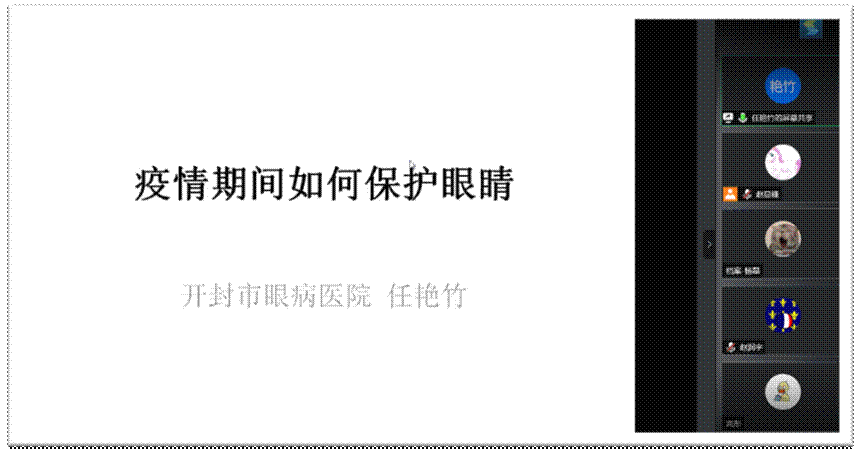 讲座伊始,任艳竹老师分享了中国眼内异物研究奠基人、优秀共产党员张效房教授的先进事迹,向大家深入展示了中华民族和中国共产党百年来的发展历程,同时以生动的案例和感人的故事讲述了张效房教授为中国眼科医学所做的巨大贡献,秉承着敬佑生命、救死扶伤、甘于奉献、大爱无疆的精神,张效房教授始终保持着对国家、对人民、对事业的热爱,不畏艰苦,勇于创新,他用医者仁心点燃簇簇星火,以实际行动诠释着中国共产党人的初心使命。随后,任艳竹老师向同学们介绍了疫情期间眼部保健方法,分享了干眼症、红眼病等一系列常见的眼科疾病相关的病症诱因以及预防治疗的措施,并提醒同学们要注意休息,避免过度用眼;避免用脏手揉眼睛;尽量少佩戴隐形眼镜,少化眼妆;少去人流密集的场所,任老师还特别提醒同学们在疫情期间要注意控制电子产品的使用时间,避免用眼过度造成损伤。在互动环节,任老师还耐心地解答了同学们提出的问题,有针对性地为大家的眼部保健提出建议。