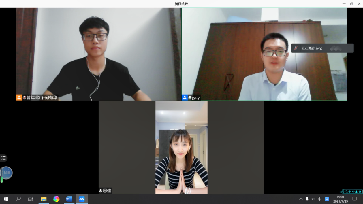 历史文化公司“昔年此山”团队“百廿今回首,寻访筑梦人”暑期社会实践专项成员陈洋、何有华、何振楠、薛晓萍分别在7月29日、8月7日和8月12日对王思佳(2012级)、贺伟(1982级)和赵海涛(1995级)三位考古学专业员工进行了线上采访。