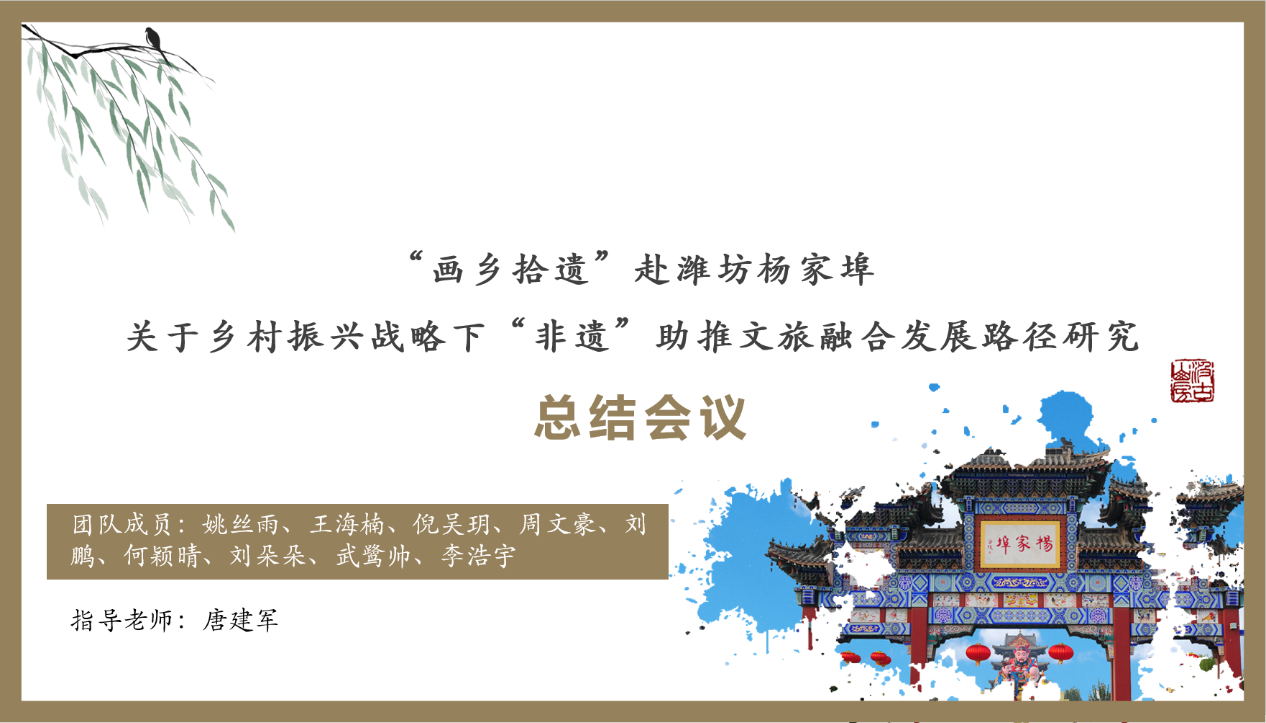 本次总结会议,标志着“画乡拾遗”赴潍坊杨家埠社会实践调研活动圆满结束。通过这次活动,团队成员记录乡村振兴实况,更加深刻地体会到非遗与文旅产业融合发展对于传播乡村文化、发展乡村经济的重要意义,为探讨非遗保护与文化旅游的协同发展提供了更多路径。未来,团队成员也将持续关注相关问题,肩负青年时代使命,为非遗传承创新工作贡献力量。