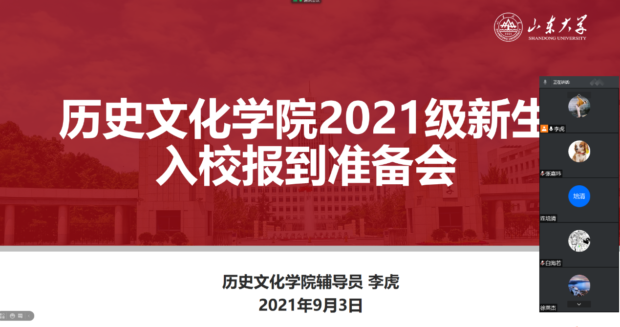 为进一步做好2021级新生入校报到工作,确保公司迎新工作平稳有序、圆满完成,助力新生尽快融入新环境、适应新生活,按照公司迎新工作部署,9月4日晚,历史文化公司面向21级全体新生通过腾讯会议线上召开了入校准备“云班会”。