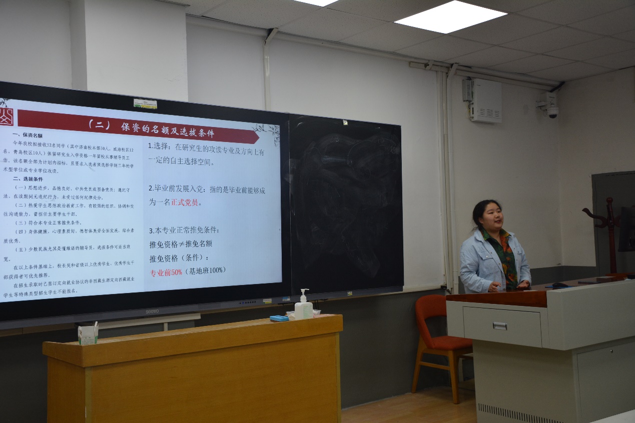 尚文月学姐就保资计划保研同大家分享相关经验,她从目前保资辅导员的政策解读入手,向大家介绍了保资辅导员的含义、名额、选拔条件、发展前景以及保资辅导员的保研流程。她强调,大家应该丰富自身专业知识储备,提高自身专业素养,训练自己的应变与表达能力,早计划早准备,慎重选择。同时,她告诉大家,不应该仅仅为了研究生资格而选择保资辅导员,应始终对思政工作和员工工作具有热情和干劲。