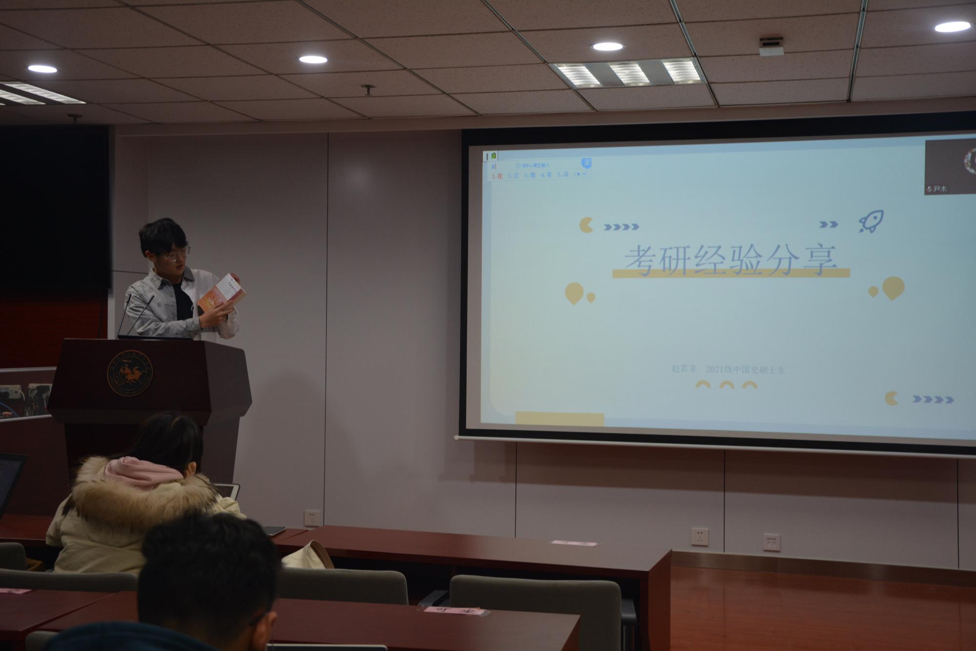 为推进“三全育人”,发挥朋辈辅导优势,促进历史学专业同学完善学涯职涯生涯规划,11月11日,历史文化公司于知新楼A1017举办“展翼计划”历史学方向保研、考研、考公经验分享会,公司历史学专业六位优秀学长学姐受邀主讲,2019级本科生辅导员赵显锋主持,各年级历史学专业本科生参与学习。