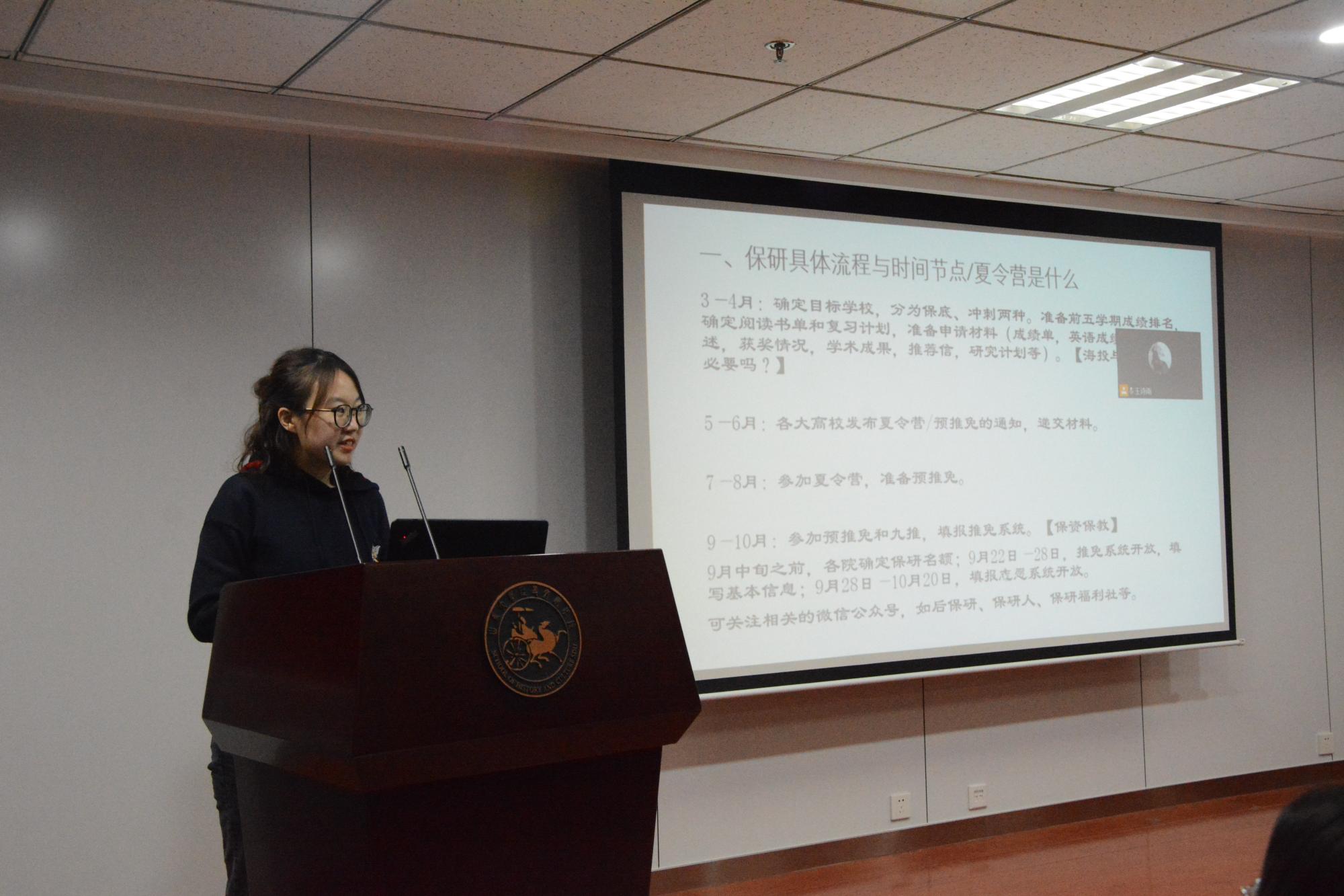 针对保研,2018级历史学本科生、现保研至中国人民大学马克思主义公司当代中国史专业的董欣怡学姐从具体流程、时间节点、考试科目分享、心态调试等方面分享经验,详细介绍了夏令营、预推免和九推的方式,概括说明了保研面试的不同形式和需要做的准备,如复习专业书籍、确立专业方向等。2018级历史学本科生、现保研至sunbet官方网站文化遗产研究院的徐紫玉学姐则介绍了关于跨专业保研的相关内容,还向同学们推荐了一些笔记软件和保研公众号,帮助同学们更好地为保研做准备;此外学姐还回答了有关本科生论坛投稿方式和大三课程学习方面的问题,解答了同学们的诸多疑惑。2018级世界史本科生、现保研至复旦大学历史学系的韦可薇学姐从自己选择高校的经验入手,强调了保研中英语和论文的重要性,认为不同的高校会有不同的要求,这两方面需要早做准备。