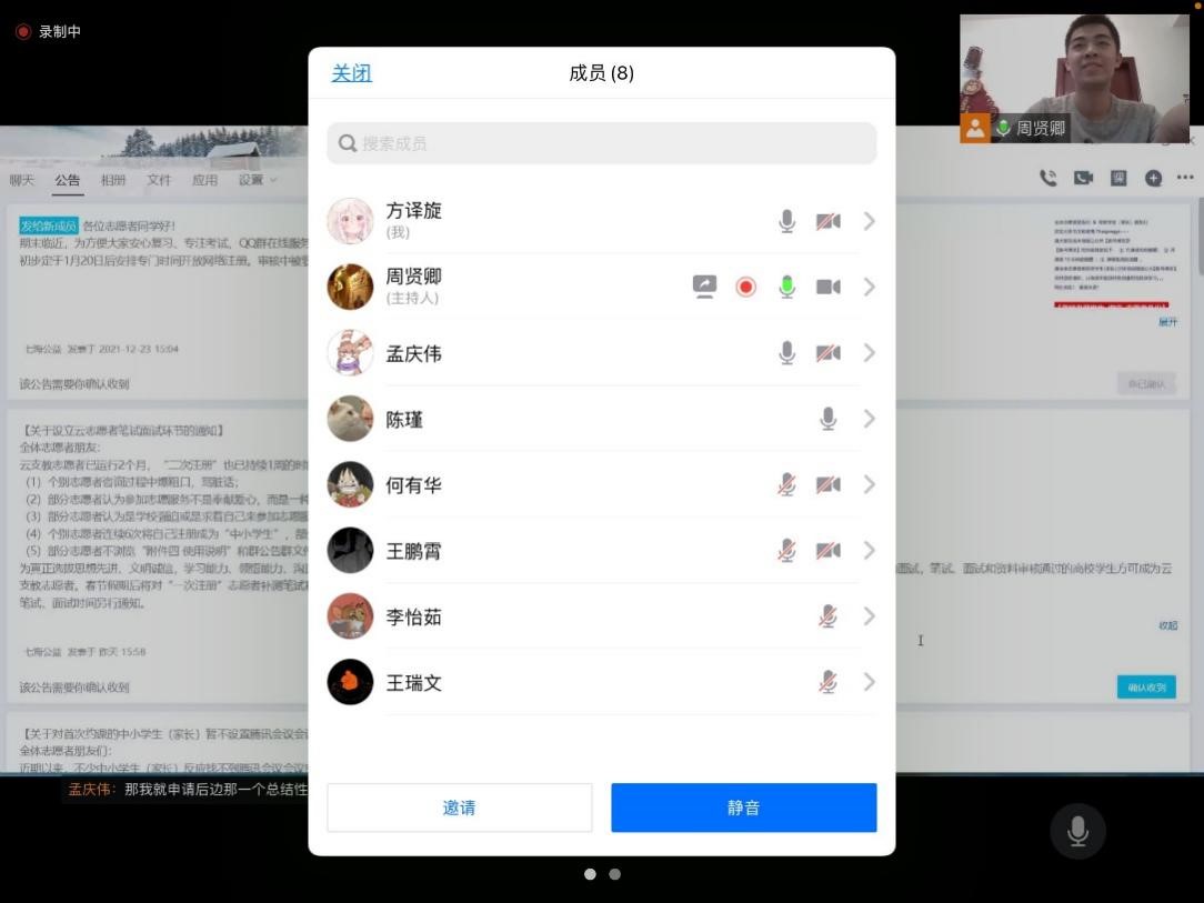 会议最后,团队成员就七海公益支教平台最新提出的面试、笔试政策要求做了进一步商讨,明确提出要积极响应和履行云平台的工作规范,在支教过程中贯彻奉献、友爱、团结、互助的志愿精神,支教全过程做好文明诚信、勤奋努力的表率。同时,会议重申了课前准备教案的重要性,要求各队员继续认真准备、逐步丰富课上支教内容,畅通课程经验分享渠道,明晰团队实践后期工作安排,以饱满的精神状态开展实践活动。