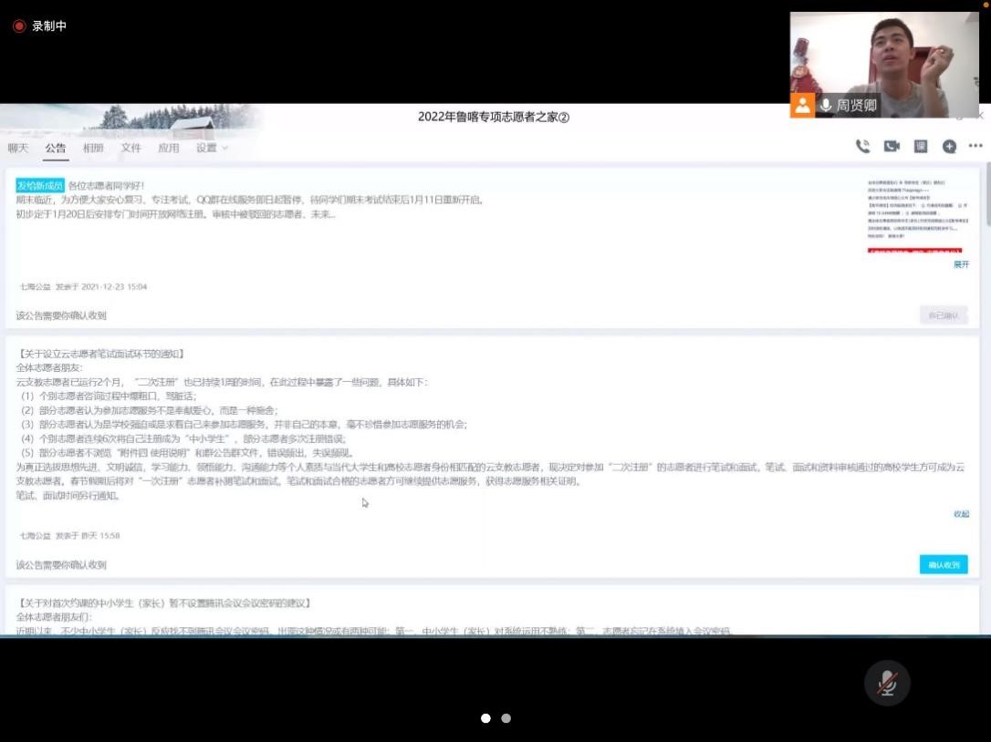 2022年1月29日,sunbet官方网站历史文化公司“齐新协力,鲁喀相连”志愿支教服务团队在线上召开实践中期会议。会议系统梳理了鲁喀专项志愿支教活动前期工作,明确了实践后期的支教安排和宣传计划,团队成员代表交流分享了支教心得和经验。会议由团队队长周贤卿主持。