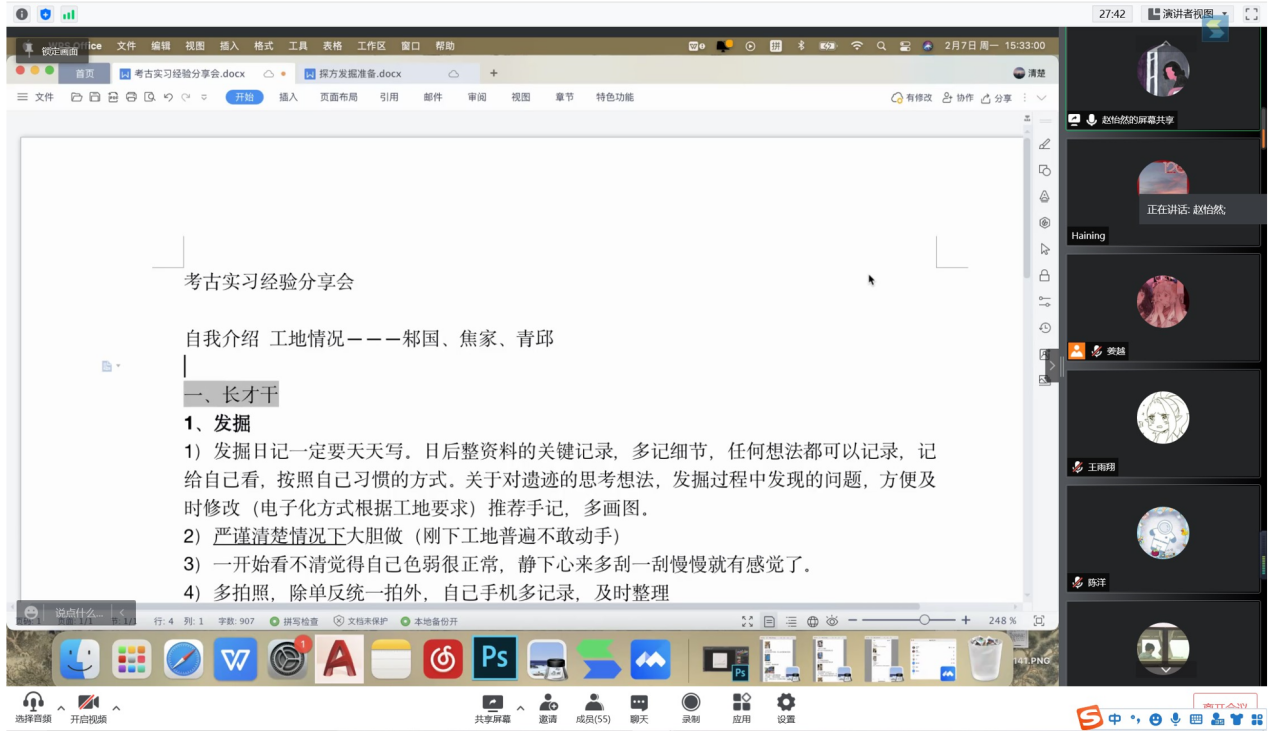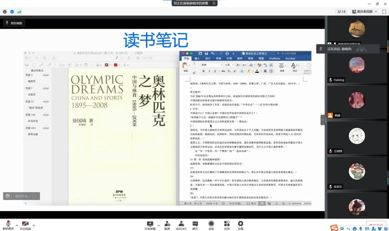 2月7日,就业(实习)经验分享会于线上举办,杨振杰、孙崇辕、赵怡然三名同学受邀分享,杨振杰、孙崇辕两位同学主要就岗位选择、简历制作、面试技巧等方面分享自身的实习或就业经验,考古学的赵怡然同学则充分结合自身的专业,介绍了探方发掘需要做的准备以及在实际实践过程中的注意事项。2月11日,刘海龙、孙辰睿、胡晓烨三名同学受邀分享论文撰写心得,三位同学主要就如何选题、如何获取材料、如何搭建论文逻辑框架等问题进行分享,此外,他们也分享了自己在论文撰写过程中遇到的问题,以及自己的论文写作技巧等内容。2月14日,读书分享会线上举行,王雨翔、高妍、薛晓萍三名同学受邀进行分享,王雨翔和高妍同学主要介绍了自己如何进行书籍的选择以及读书的方法,其中,高妍同学强调了读书环境对于自身的影响,也为同学们如何提高读书效率提出了建议,薛晓萍同学则充分结合了其当下正在阅读的书籍以及读书笔记,向大家介绍了其撰写读书笔记的方法并分享了其阅读过程中的心得体会。2月18日,董欣怡、毕欣雨、伊楠三名同学受邀主讲员工干部经验分享会,三位同学主要分享了自己的员工工作经验和工作中遇到的各种问题,同时,她们也就员工工作中容易出现的各种问题进行了方法建议。