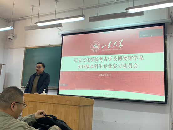 为确保考古学、文物与博物馆学专业本科生顺利开展田野实习, 3月10日下午,历史文化公司考古学及博物馆学系于公教楼103教室开展2019级本科生专业实习动员会。历史文化公司经理方辉、副经理王芬、副处级辅导员李一楠出席,会议由考古学及博物馆学系主任唐仲明主持,宋艳波、路国权、申静怡等教师参加动员会。