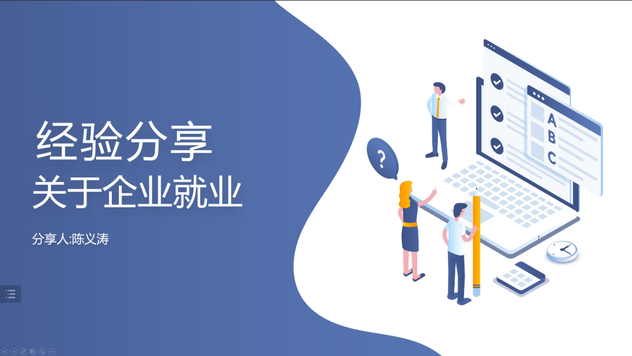 陈义涛目前就职于中国长江三峡集团有限公司。陈义涛结合自身经历从信息战、持久战、心理战和体力战四个方面为同学们介绍参与秋招的注意事项。列举了多个岗位招聘的信息渠道,指出简历制作以及就业笔试、面试的注意事项。向德锋目前就职于中建五局信和地产有限公司。向德锋从个人基本情况介绍、求职策略与选择建议和校招(秋招、春招)攻略三个方面进行分享。从自身经历出发,建议同学们学会辨别就业信息,建议结合国家政策方向选择就业去向。最后,王雨翔向同学们推荐了就业相关网站、app和图情招聘相关公众号。根据自身经历,向同学们介绍了档案学相关的岗位方向、薪资待遇、岗位数量、行业和技能要求等情况,帮助同学们更好地了解档案学专业的就业情况。