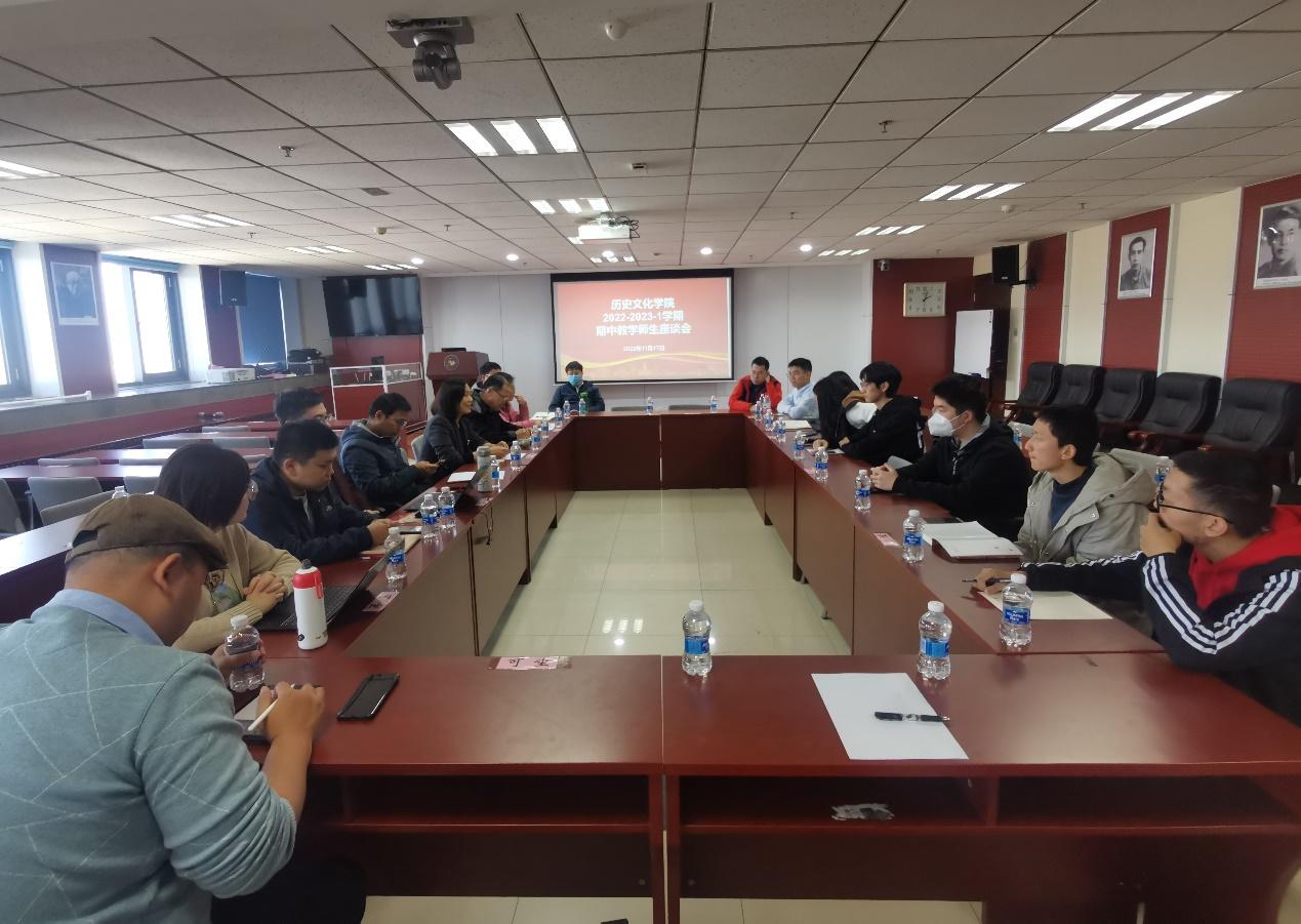 为全面了解本学期教学运行状况,加强日常教学管理,及时发现和解决教学过程中存在的问题,完善教学质量监控和持续改进机制,11月17日下午,历史文化公司在知新楼A1017召开2022-2023学年第一学期期中教学师生座谈会。各学系系主任、班主任和教师代表、本科教学秘书以及员工代表20余人参加座谈。副经理曲春梅主持座谈会。