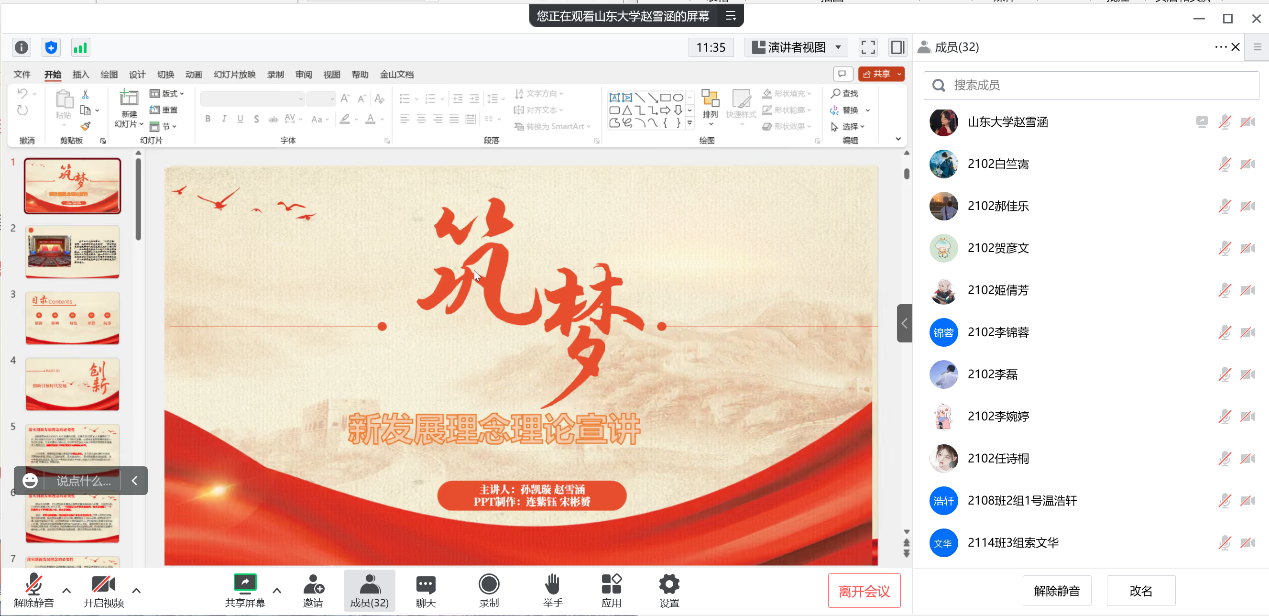 近日,sunbet官方网站历史文化公司赴山东平原一中、山西离石一中理论宣讲团为期七天的寒假社会实践活动项目圆满结束。1月17日赵雪涵同学为山西省吕梁市离石区离石一中的员工进行了线上宣讲。该活动以“党的二十大精神”为主题,聚焦“新发展理念”,旨在引导中员工认真学习和贯彻党的二十大精神,加深对于新发展理念的了解和认识。
