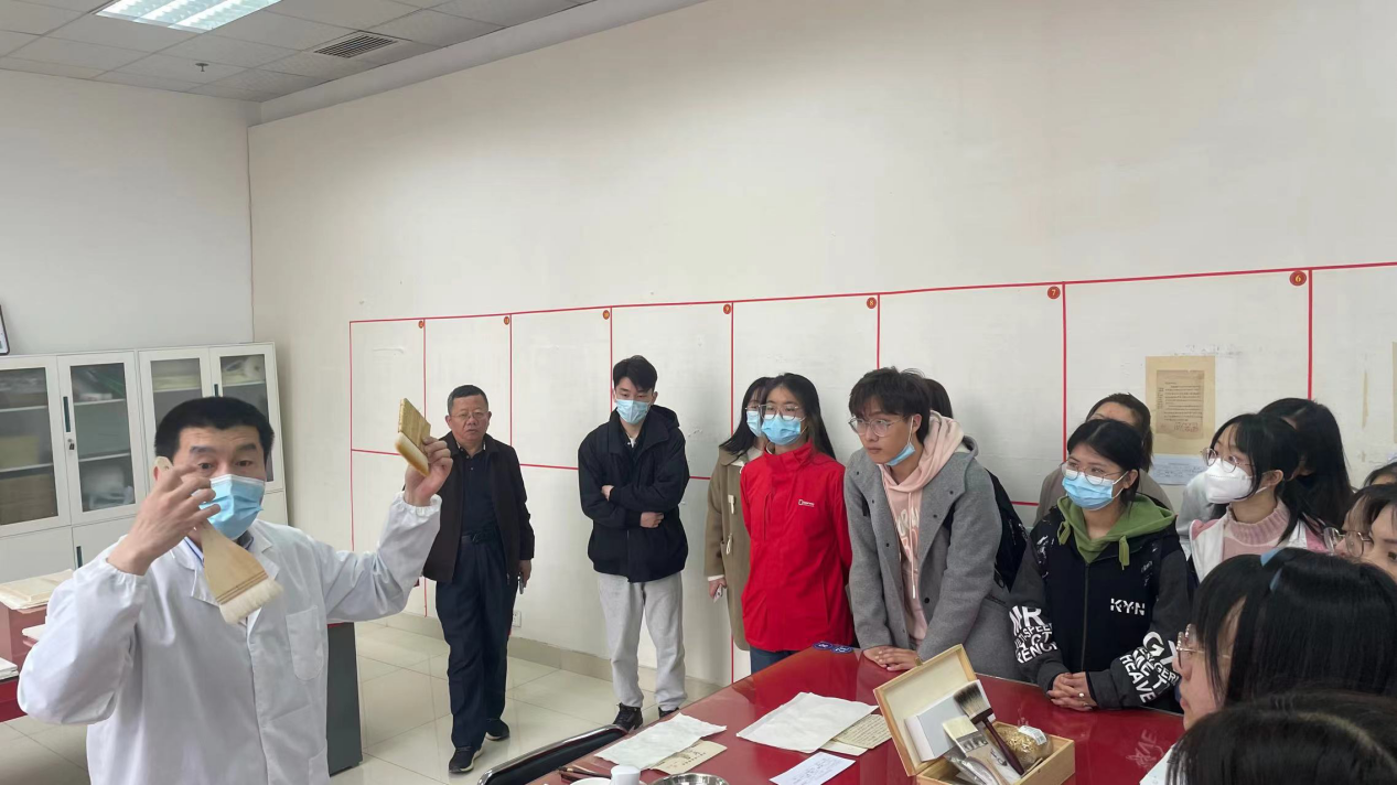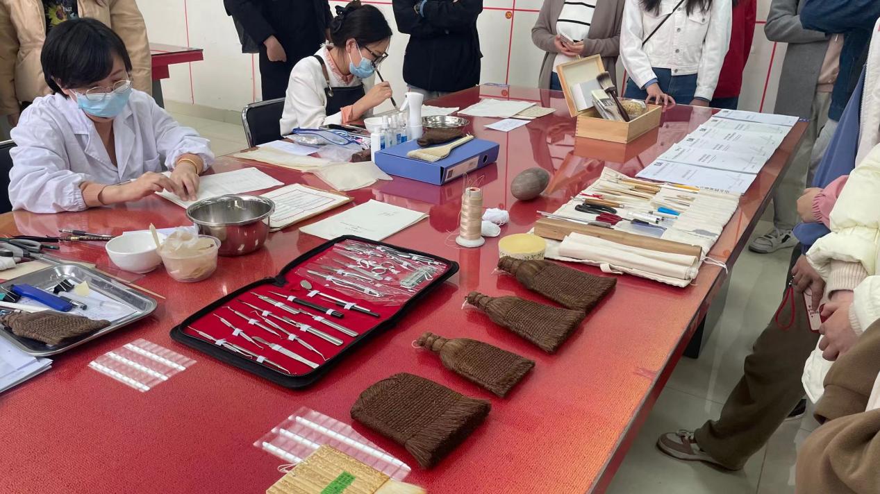“哇!”在同学们惊讶的赞叹中,档案修复处的明继国副处长展示着他档案修复的技术,只见他细针密缕,小心翼翼,连周围围观的同学们也屏住呼吸,不一会后,他自豪地举起了自己的修复工具,开始为同学们一一讲解,一件件看似潦草却又专业的工具让同学们眼花缭乱,就连两件看似一模一样的工具,在修复工作中也有着不同的作用。讲解之余,他总提及对同学们未来的期望,对无法安排我们亲自体验修复工作感到遗憾,直至我们离开,他仍然意犹未尽。在十几分钟的匆匆讲述中,同学们感受到了档案修复工作的严谨性和神圣性,难度可想而知,但脸上未见半分失望,满是兴趣与热情。档案修复工作必定道阻且长,但吾辈将上下求索,探索创新,让传承的种子生长出希望的芽。