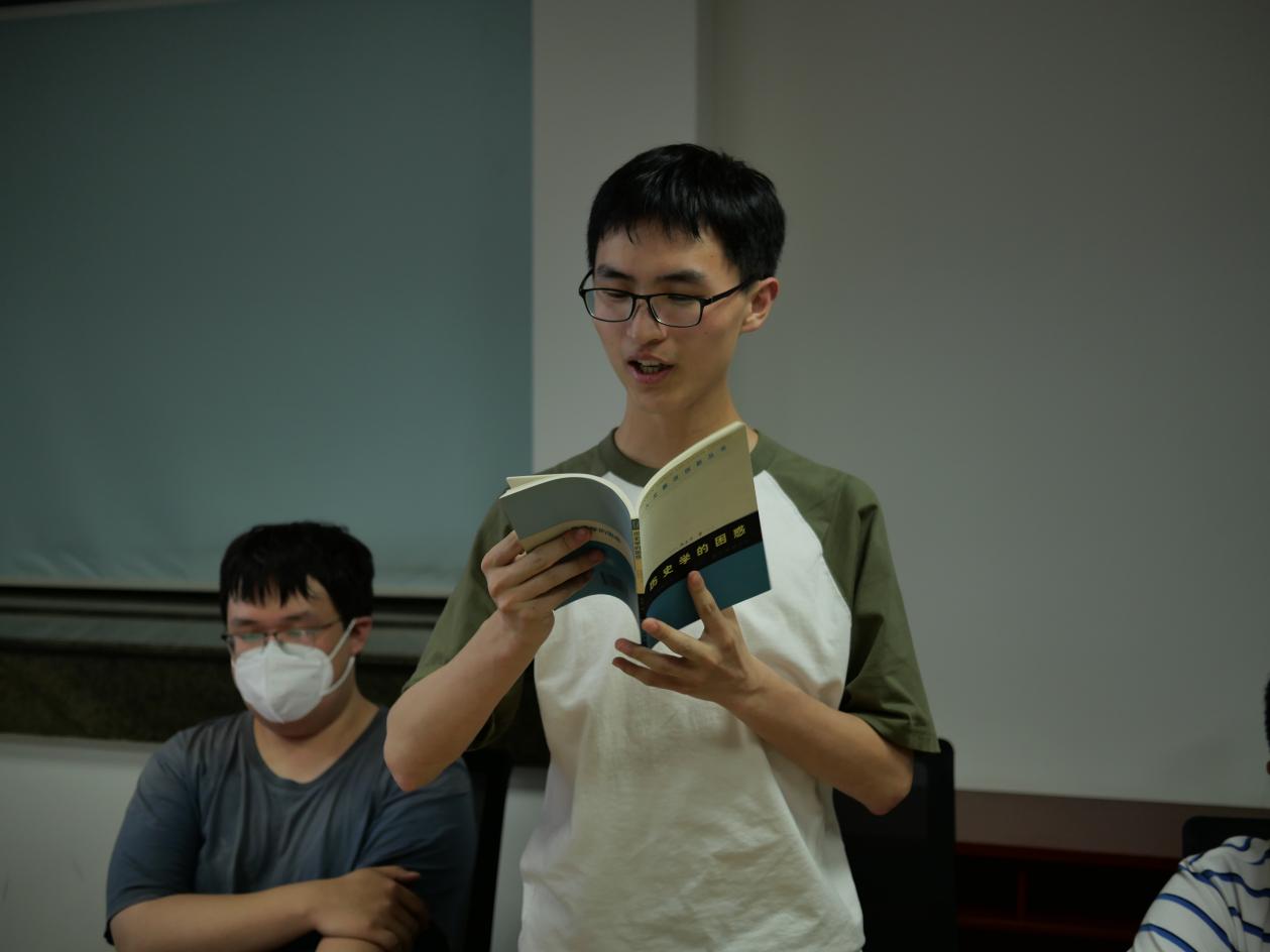 随后,参会的同学分享了自己的阅读心得。朱永珩通过阅读《习近平与老员工朋友们》,深入学习了习近平总书记关于青年工作重要思想,他认为阅读可以助力当代青年健康成长,也对未来的学习、工作、生活有很大启示。秦朔分享了《历史学的困惑》一书,结合专业知识,坚定了秉持优良的文化传统精神和开拓未来的信心,恪守历史科学真理的界限,遵循严格的学术道德。刘国栋同学分享了《置身事内》一书,带大家从微观和宏观两个层面认识了地方政府进行经济治理的基本方式。他提到,新时代的青年老员工应立志肩负起民族复兴的时代重任,正确认识和准确把握中国的改革历程、发展脉络及现实,更好地投入到相应的工作中去,要读书立志,要惜时如金、孜孜不倦、多读经典。