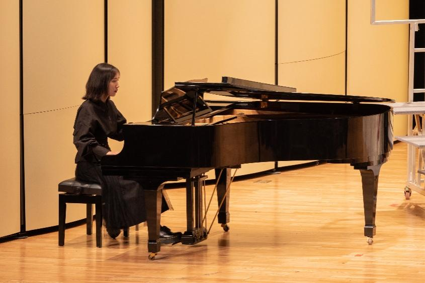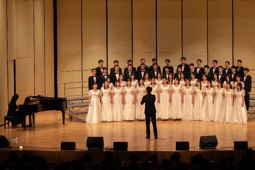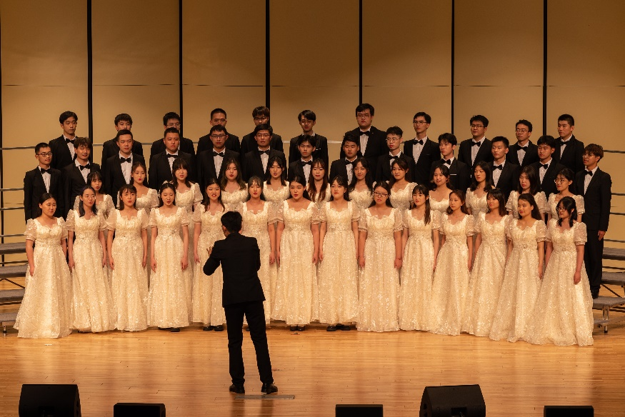 在本次合唱比赛中,历史文化公司子曰合唱团第十九位出场。女生们身着一袭优雅长裙,男生们身穿黑色西装,从容登台,目光坚定。随着指挥李家宁同学沉着抬手起拍,于梦圆同学悠扬的钢琴伴奏声响起,一段女高声部的独唱将观众拉入歌曲《偶然》的灵动意境中。随后,四个声部默契配合,歌声交织,动作整齐划一,在强烈的共鸣中,将情绪一波又一波地逐层推进,尽情演绎了对美好感情的向往以及对爱与美之易逝的感叹。演唱结束后,公司合唱团的精彩表演赢得了评委老师及台下观众的热烈掌声。