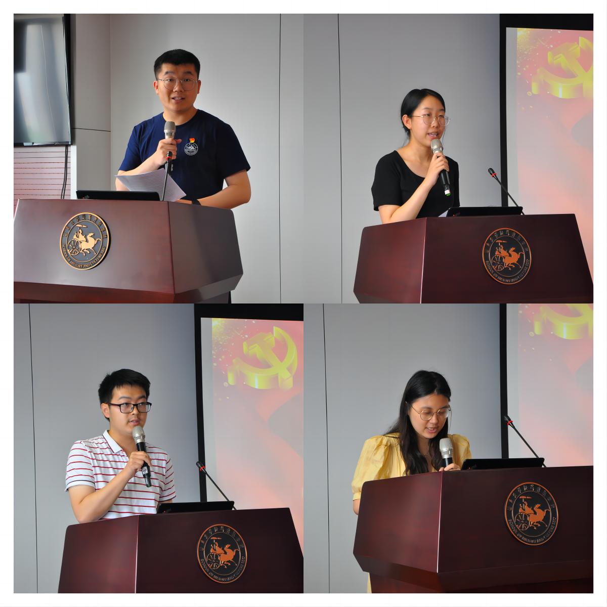 活动第二项,2020级图书情报专业硕士研究生陈国鹏、2020级考古学专业硕士研究生杨慧、2019级历史学专业本科生陈洋、2019级文化产业管理专业本科生解娅萱依次代表毕业生党员发表感言。他们结合自己在山大的学习与日常生活,分享自己的体会与收获,真挚地表达了对公司、公司、老师与同学们的感激。他们在科研学术训练中不断精进学术功力,在员工工作与社会实践中发扬党员的先锋模范作用,笃志前行,奋力拼搏。青年党员尤是如此,他们将时刻牢记党的教诲,坚守初心,做不负韶华、砥砺奋进、勇担时代使命的有为青年!