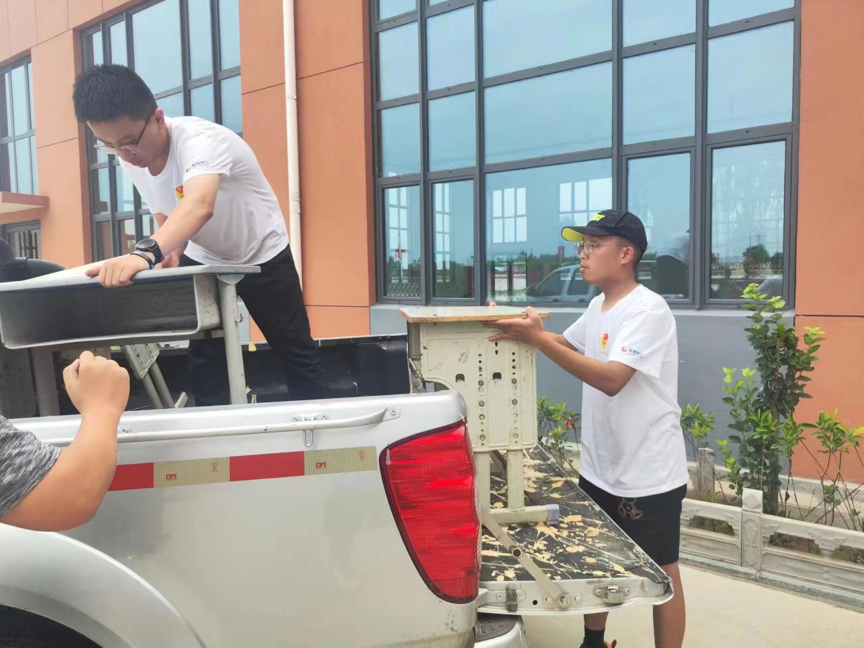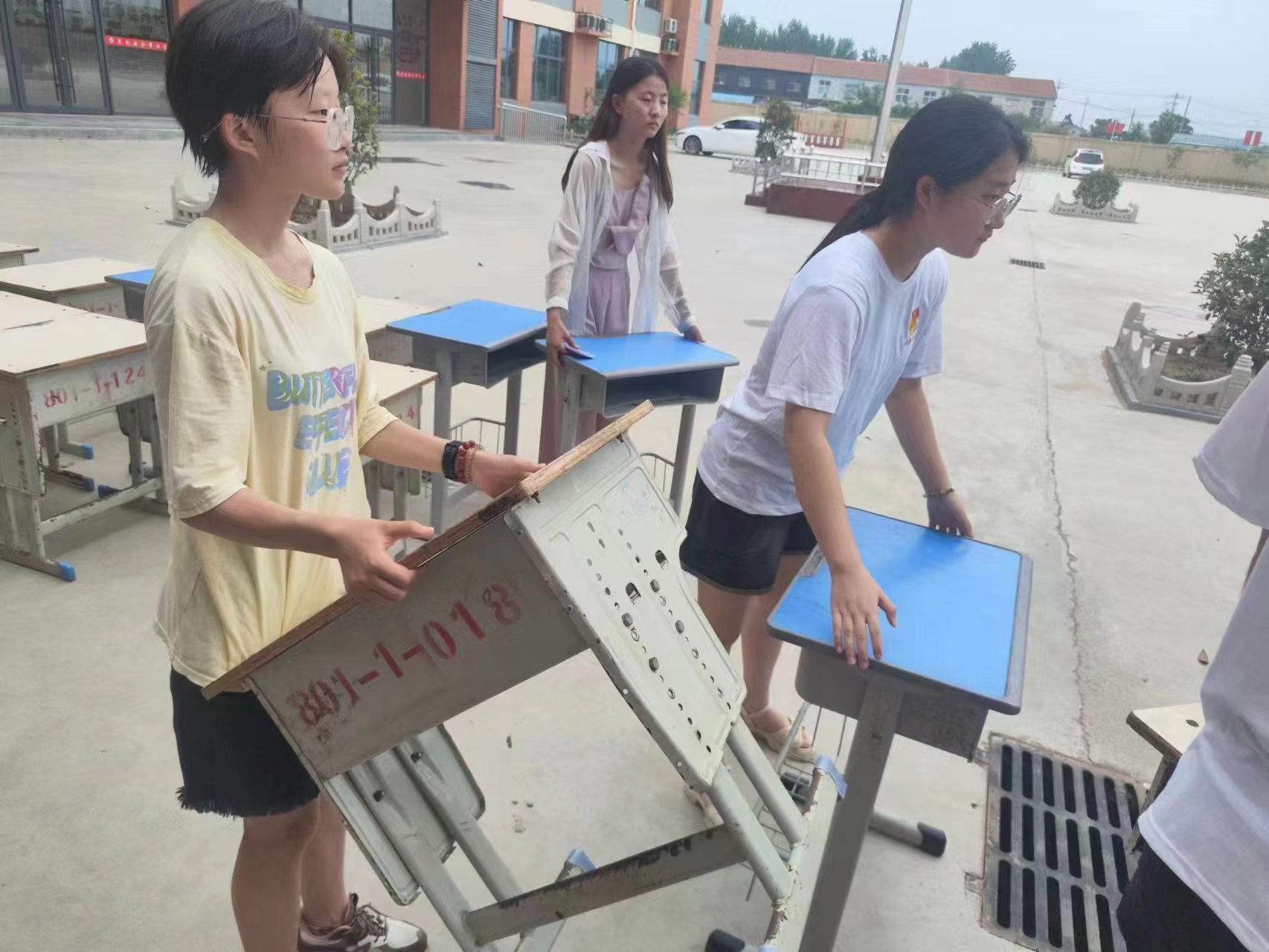 在准备第一天的开营仪式暨家长会前,团队的所有成员在前一天到附近公司积极搬运课堂开课所需要的课桌椅,根据已有的报名小荷学堂的员工名单,选择了不同高矮的课桌、凳子各30余张,并在教室中进行桌椅排布和整理,让原本陈旧有灰的课桌椅在团队成员们的清洁下变得干净整洁,更有利于孩子们在教室中进行为期20天的课程学习。