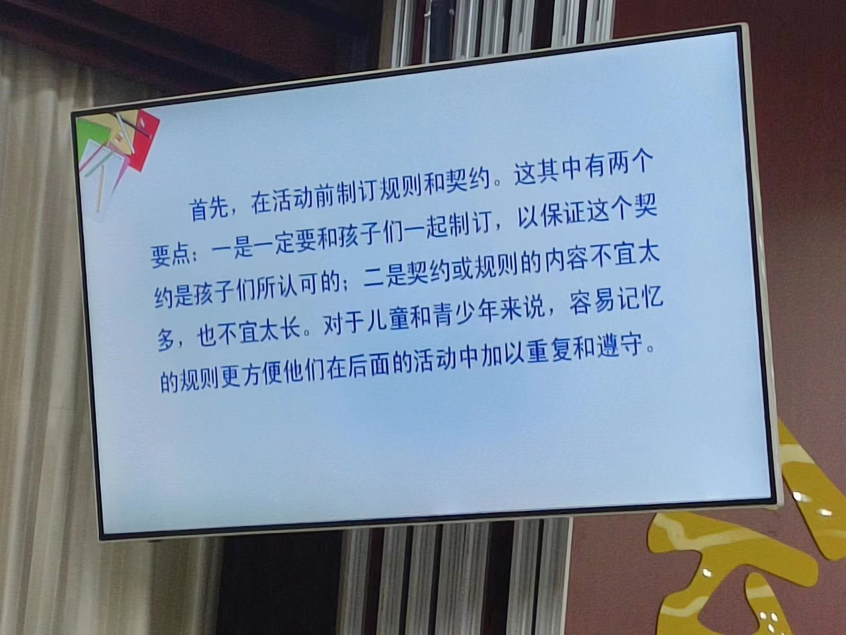 在第一天的开营仪式上,团队成员首先让家长们签署了“小荷学堂”协议书,并进行了初次的点名,保证让团队成员们了解家长们的签到情况。随后,“山荷”队大屯分队全体代表共6人进行了自我介绍,自我介绍的内容包括了个人专业、教授课程和自我爱好等。之后,苏立朋同学介绍了本次“小荷学堂”开课的主要课程内容,包括红色教育课程、自护教育课程、体育活动课程等。除此之外,每个团队成员还结合自身的专业特长,开展了一些相关的特色课程,例如照相编辑教学、山东地理特色介绍等。最后,团队向家长们强调了开课的课堂纪律以及接送时间等具体信息,并创建了班级微信群以更好地发布上课信息以及与员工家长就课堂情况等进行细致沟通。9点左右,开营仪式结束,“小荷学堂”第一节课正式开始。