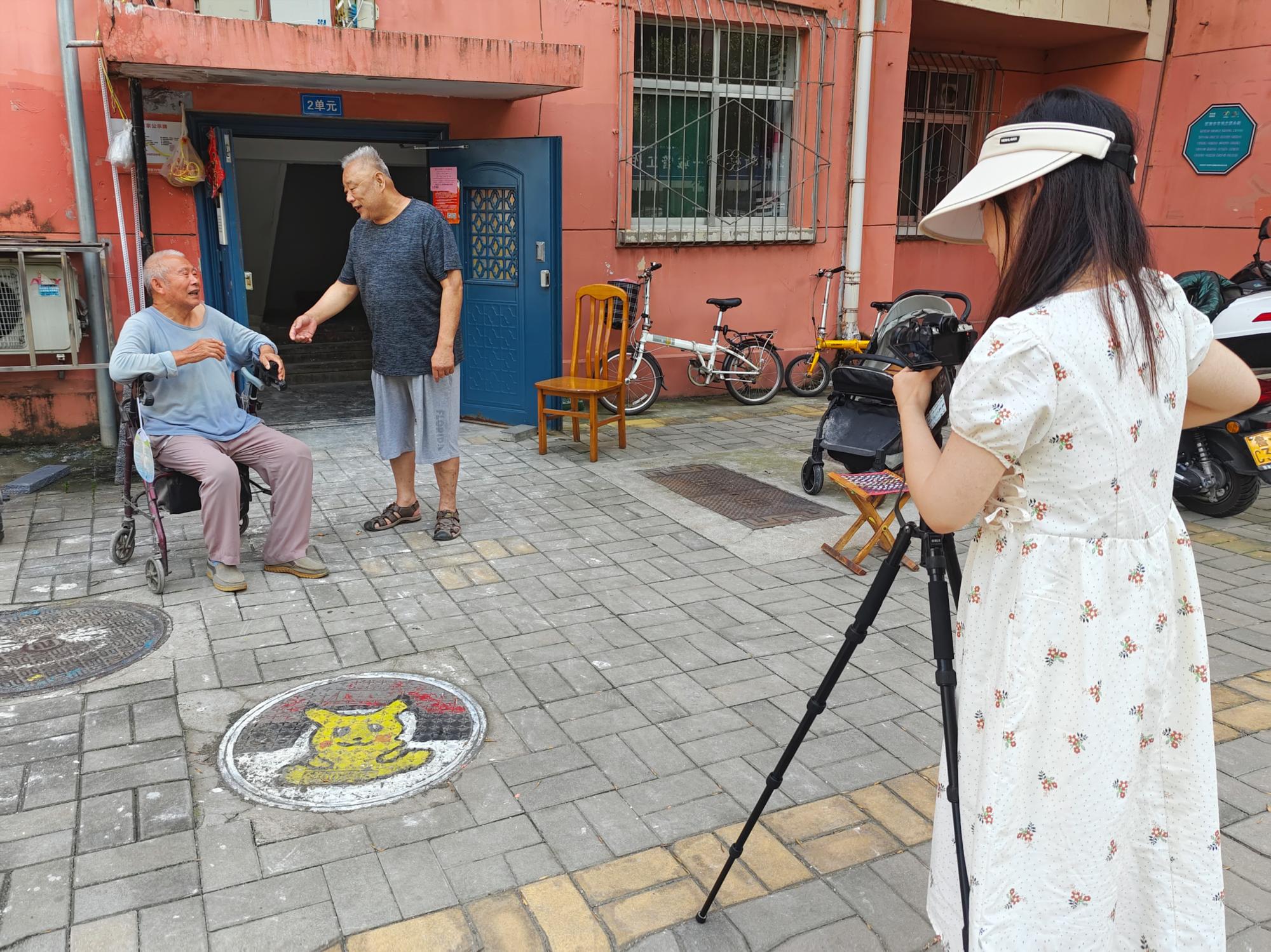 团队成员主要拍摄了甸柳社区的居民楼和公共活动区域,通过实地抓取和拍摄甸柳社区中的生活场景和大众人物,成员收集了大量珍贵的生活化素材。另外,团队成员还通过和社区居民交流,更深入地了解了社区治理模式和他们的日常生活,为之后纪录片整体的录制提供了脚本和剧情的参考。