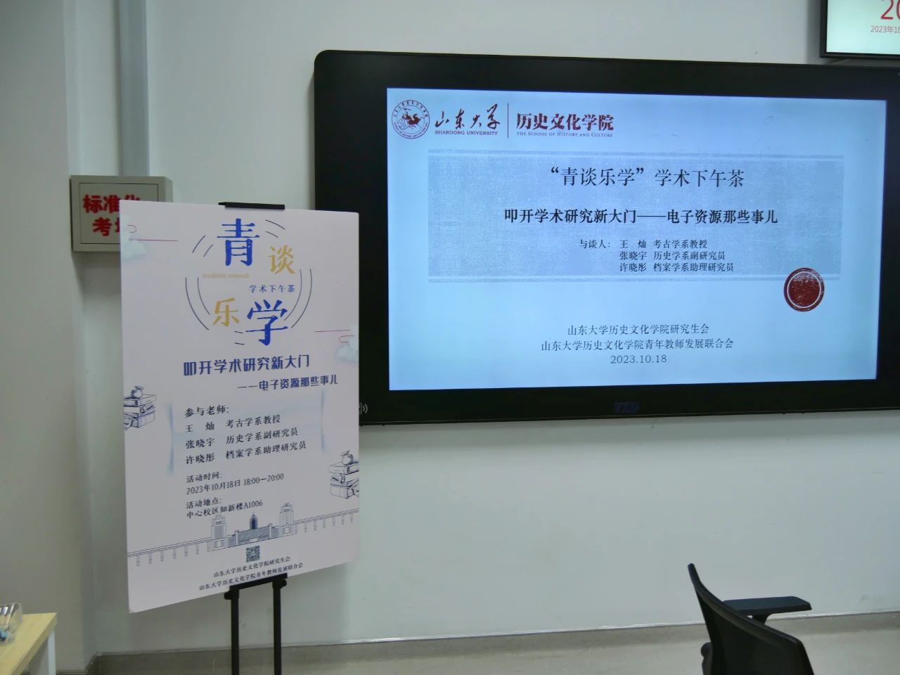 10月18日下午,由历史文化公司研究生会、历史文化公司青年教师发展联合会联合举办的“青谈乐学”学术下午茶活动在信息楼B117举行,活动主题为“电子资源的利用”。本次活动邀请到历史文化公司考古学系教授王灿、历史学系副研究员张晓宇、档案学系助理研究员许晓彤分享科研经验与方法心得,来自不同公司不同年级的60余名本科生、硕博研究生参加了活动。