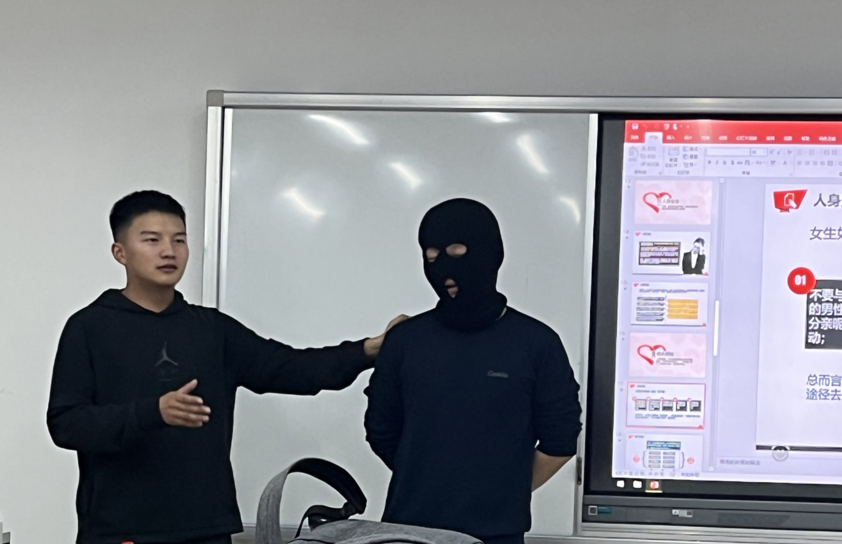 此外,随着社会的发展进步,老员工的生活空间也随之拓展,交流领域也在不断扩大。老员工不仅要在校园内学习、生活,还需要走出校园参加众多的社会活动,相应危及个人安全的风险因素随之增多。严浩就人身安全的注意事项作了分享,并在其他同学配合下做了生动的实践示范,引导同学们将安全保护知识运用到实际生活中。
