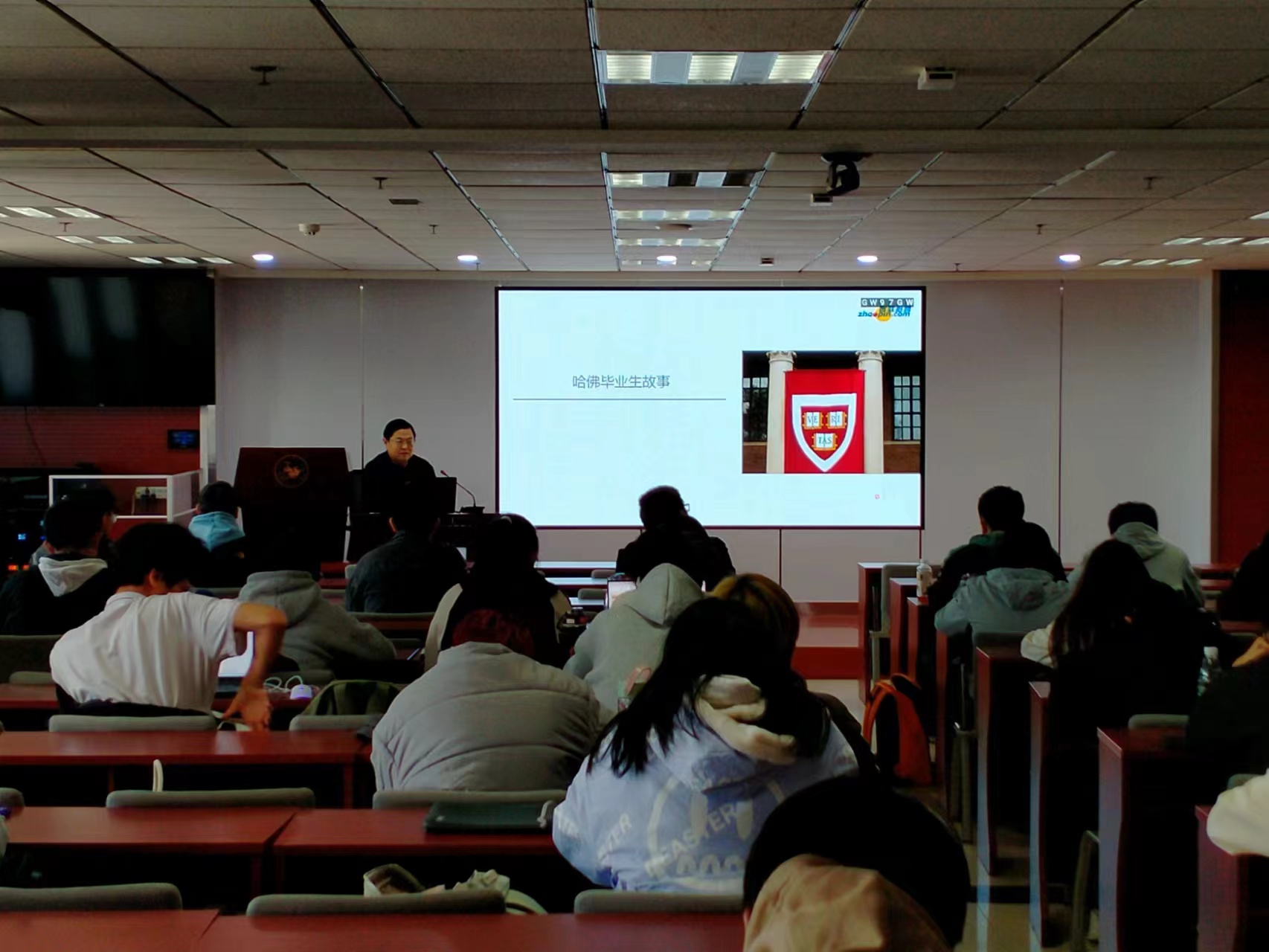 讲座伊始,李功华通过分享哈佛毕业生的故事,引入生涯规划对人生发展的重要性。他提到,首先要结合当前国家和社会发展的需要以及自身的志趣,合理地确定自己的未来职业发展目标;其次,要充分把握自身的情况,了解专业特色以及未来职业发展的能力素质要求,科学地制定自己的大学规划以及未来发展规划;最后,建议同学们不断探索和完善对于外部环境及未来发展选择的认知,从知识、技能和品质三个方面努力提升自己,为将来走向社会,走稳人生发展之路做好准备。
