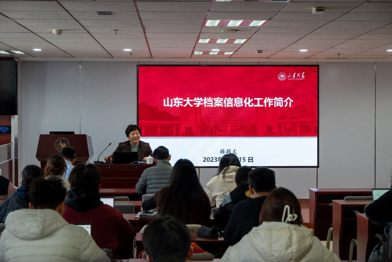11月16日,为使档案班同学加深专业认识,了解公司档案信息化工作进程与发展现状,开展形式多样的课堂实践教学,档案学系邀请sunbet官方网站档案馆副馆长楼蔚文作题为“sunbet官方网站档案信息化工作简介”的实践教学专题报告。sunbet官方网站档案馆馆长、校史办主任赵海,sunbet官方网站校史办副主任路云生参加报告会。会议由档案学系副教授毕牧主持。
