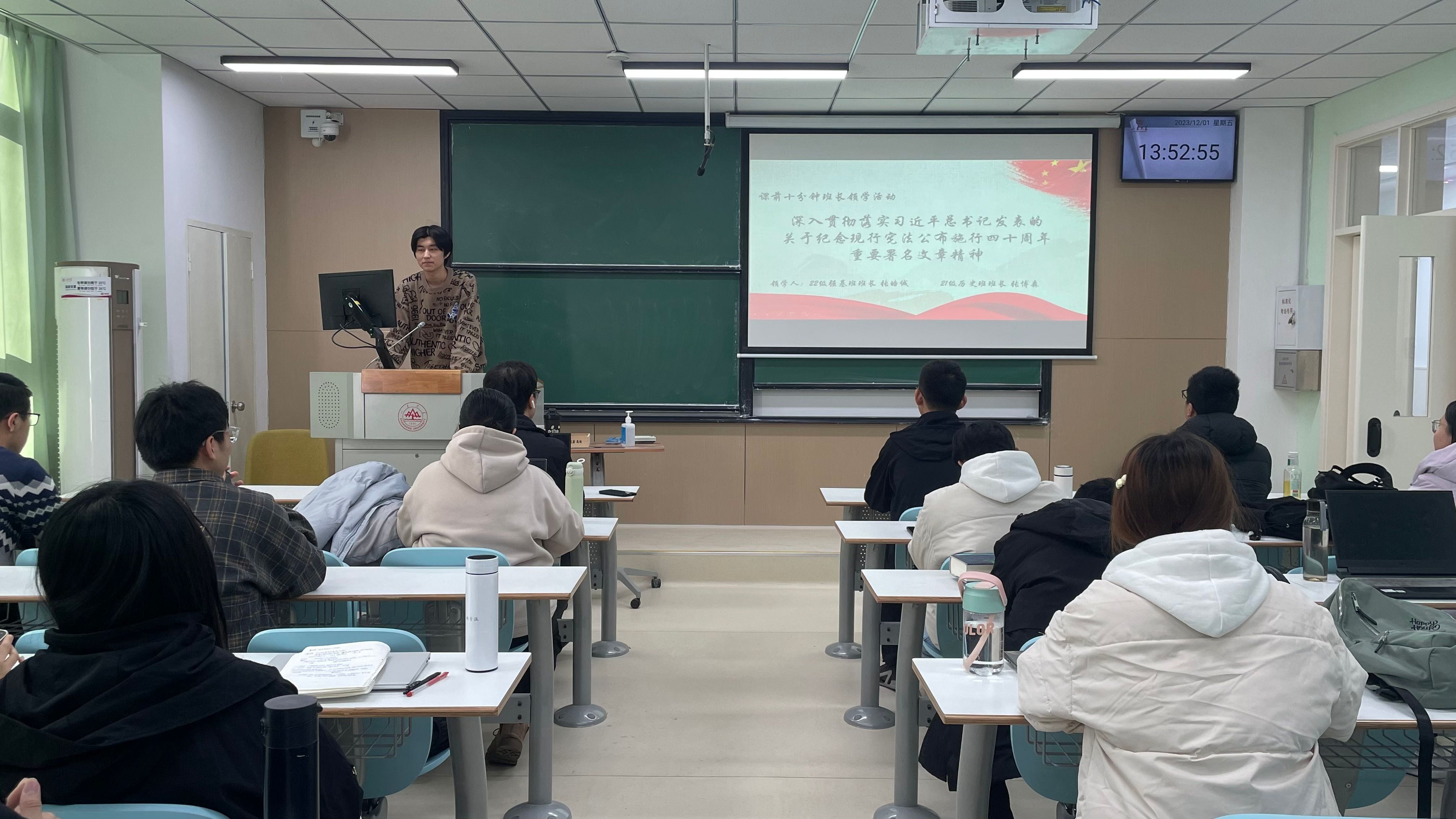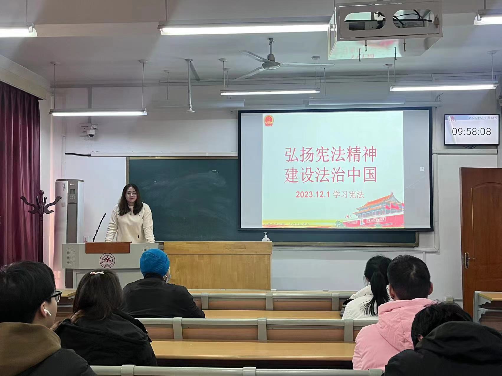 读宪法,激励青年力量。12月,历史文化公司组织2021级、2022级本科生团支部开展课前十分钟“宪法晨读”、“宪法领学”活动。通过选取宪法序言及正文中的部分章节、条款组织各团支部同学进行朗读,诵读宪法,让宪法“声”入心间,将宪法内化于心、外化于行;组织各团支部书记带头领学习近平总书记发表的关于纪念现行宪法公布施行40周年重要署名文章精神,营造宪法宣传教育的浓厚氛围,提升法制宣传教育的感染力和吸引力。