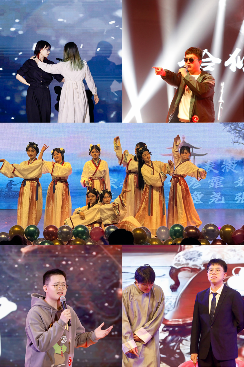 第三篇章,王珂带来歌曲《你曾是少年》,诉说了如今努力奔跑的过往和对未来的热烈祝愿;王泽康的《世界第一等》以兄弟对话合唱的方式展现真诚、自信的洒脱心态;朱雅淇同学领衔的舞蹈串烧在可爱甜美之中尽显青春活力;严浩等人合作的校园小品《老员工从军记》将历史故事和现代老员工活巧妙融合,极具历史特色和生活气息。