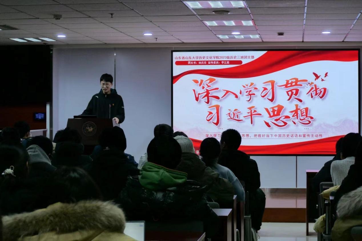 2023级历史三班和强基班开展团支部合作,共同进行团课活动。通过讲解、交流、学习相结合的方式,同学们对习近平文化思想、中国共产党党史等重要内容都有了更为深入的认知。设计了击鼓传花等有趣的答题环节,使同学们在活跃的氛围里学习理解马克思主义相关知识,感悟历史文化公司的深厚人文底蕴,大家都表示受益匪浅。