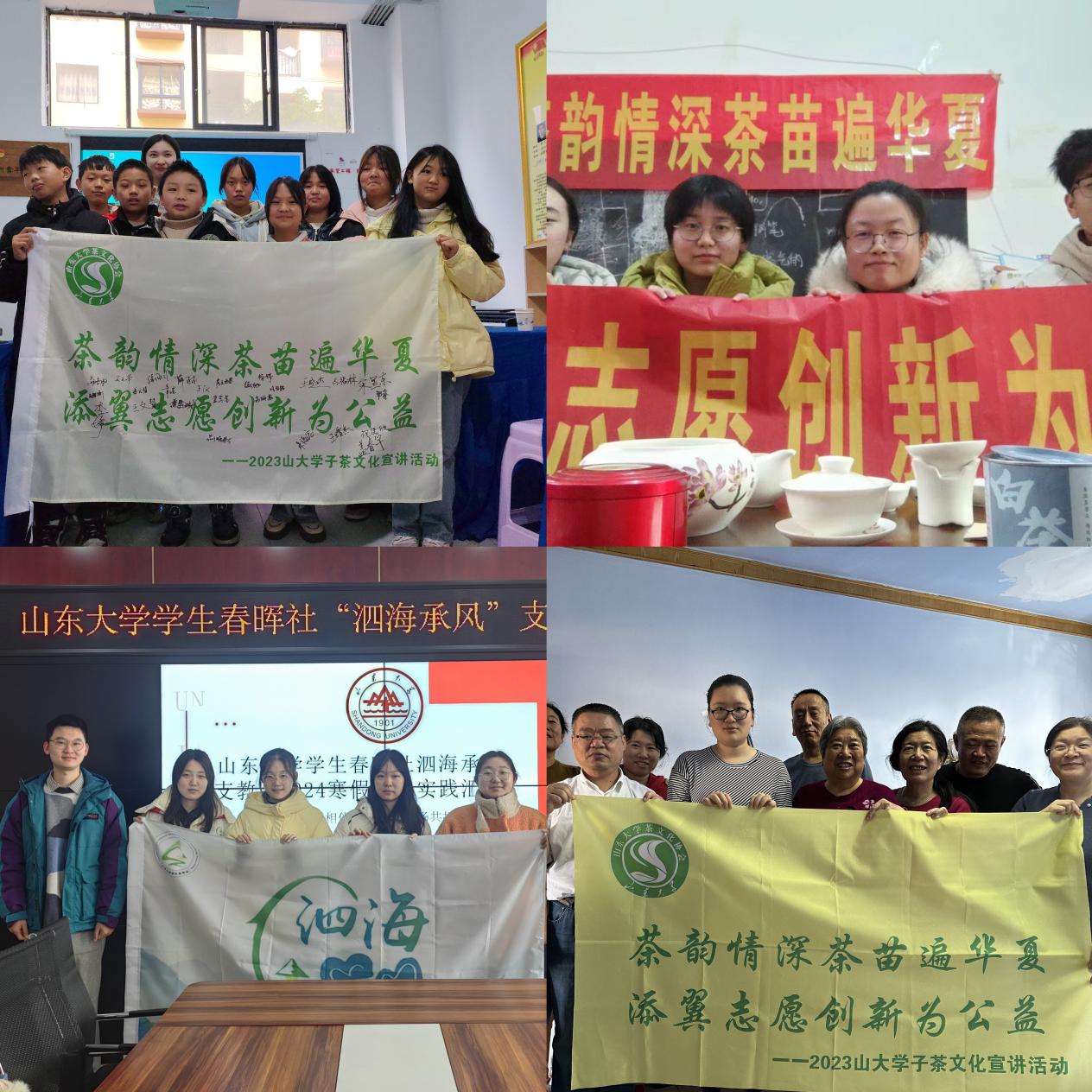 为贯彻落实习近平总书记关于“高度重视茶文化保护传承发展”的重要指示精神,引导青年学子理解中华文明,坚定文化自信,推动中华优秀传统文化创造性转化、创新性发展,2024年1月20日至2月25日,在sunbet官方网站团委、对口支援与乡村振兴办公室、仲英青年学者以及公司与sunbet团委指导下,由sunbet官方网站员工茶文化协会主办,公司七大品牌员工公益社团协办的“茶韵情深茶苗遍华夏,添翼志愿创新为公益”——山大学子中国茶文化宣讲百村行活动有序开展并顺利结束。