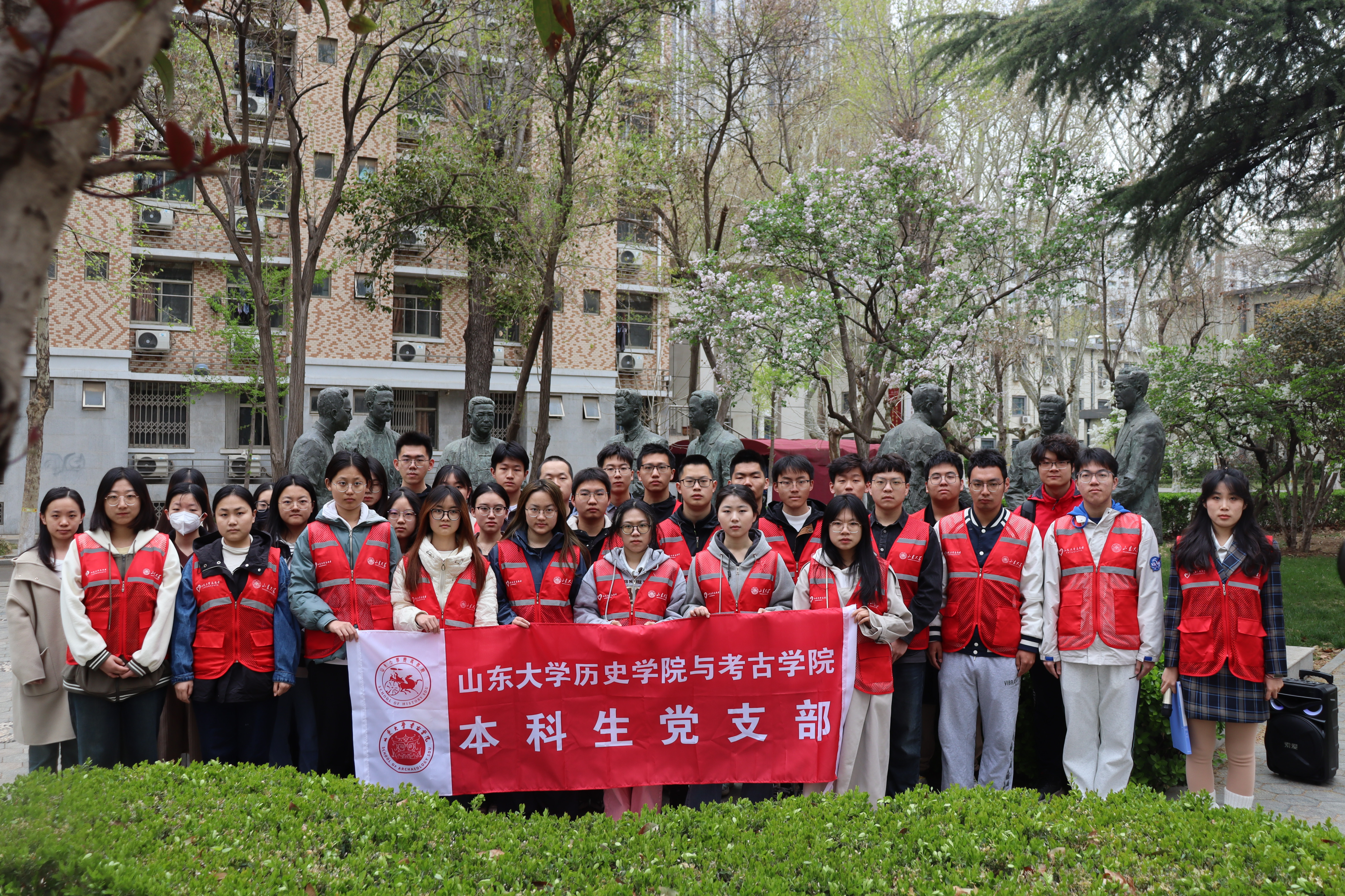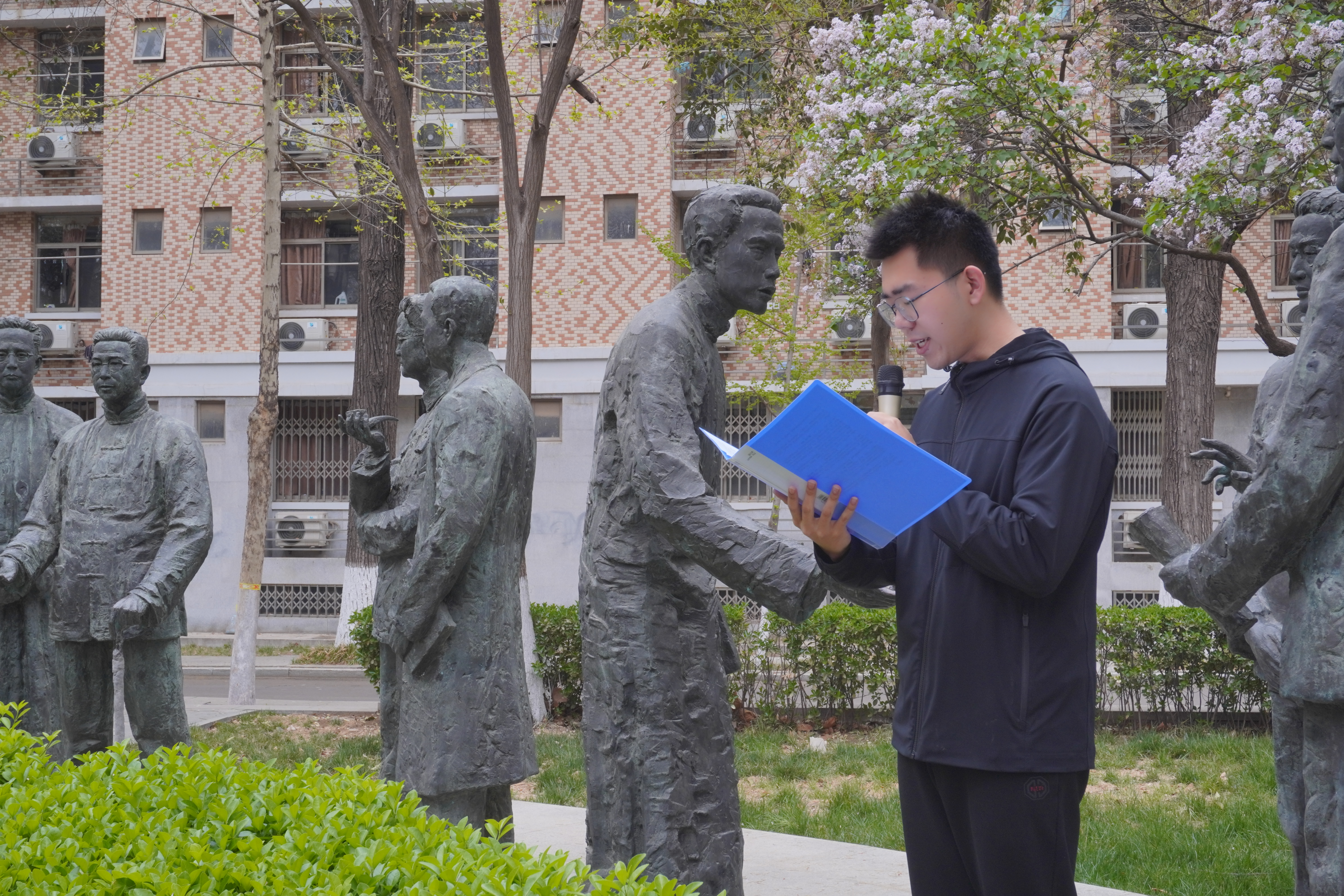 上午9时30分,学子们齐聚“八马同槽”雕像前,手捧鲜花,神态肃穆。活动开始前,大家在雕像周边进行清扫工作,细心拂去诸位前辈塑像上的尘土。随后,员工代表2022级本科生张皓诚同学发表演讲,详细介绍了八位先生的生平事迹及卓越学术成就,引领在场者重回那段史学繁荣的岁月。这不仅是对历史的回顾,更是对后学的一种鞭策与激励,期望同学们能够秉承先贤遗志,砥砺前行,勤奋向学。演讲结束后,本科生志愿者们依次上前,将手中的鲜花献给先贤,表达敬意。献花仪式完成后,同学们再次向先辈们鞠躬,以表达深深的怀念与哀思。