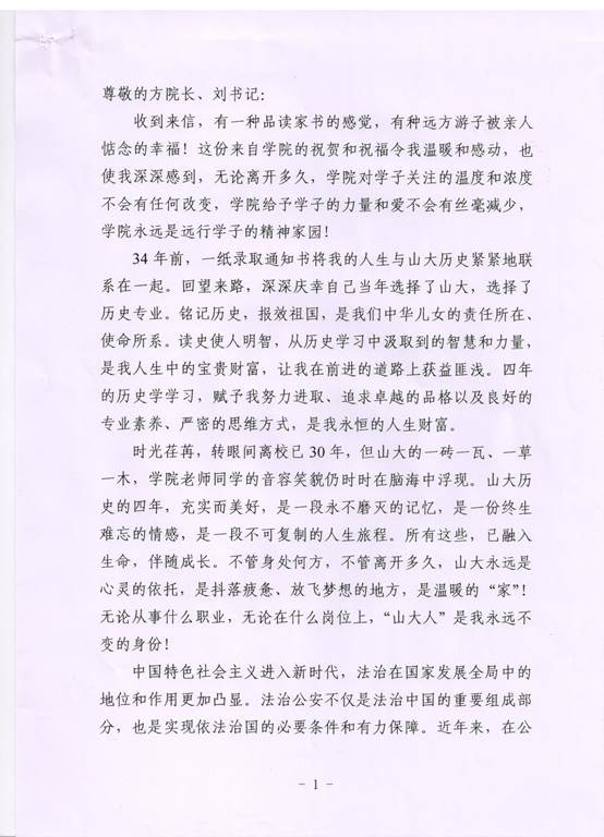 历史系85级员工华列兵致方辉经理、刘军书记的一封信