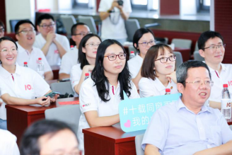 主题班会上,公司向员工们赠送了院徽作为纪念。员工们逐一分享了十年来的奋斗经历和心得体会,抒发了对母校和公司事业发展的自豪感,表达了对恩师和同窗的深情祝福,共同祝愿母校和公司未来发展更上一层楼。座谈现场,同学们互致问候,洋溢着热烈而温馨的气氛。因岗位值班、身在国外、照顾孩子或老人等原因未能参加返校活动的部分员工,通过视频短片、微信、电话等形式送上了对老师和同学的问候。员工返校筹备小组还转达了因其他安排未能出席主题班会的老师们对员工们的祝福。主题班会由员工梁栋主持。